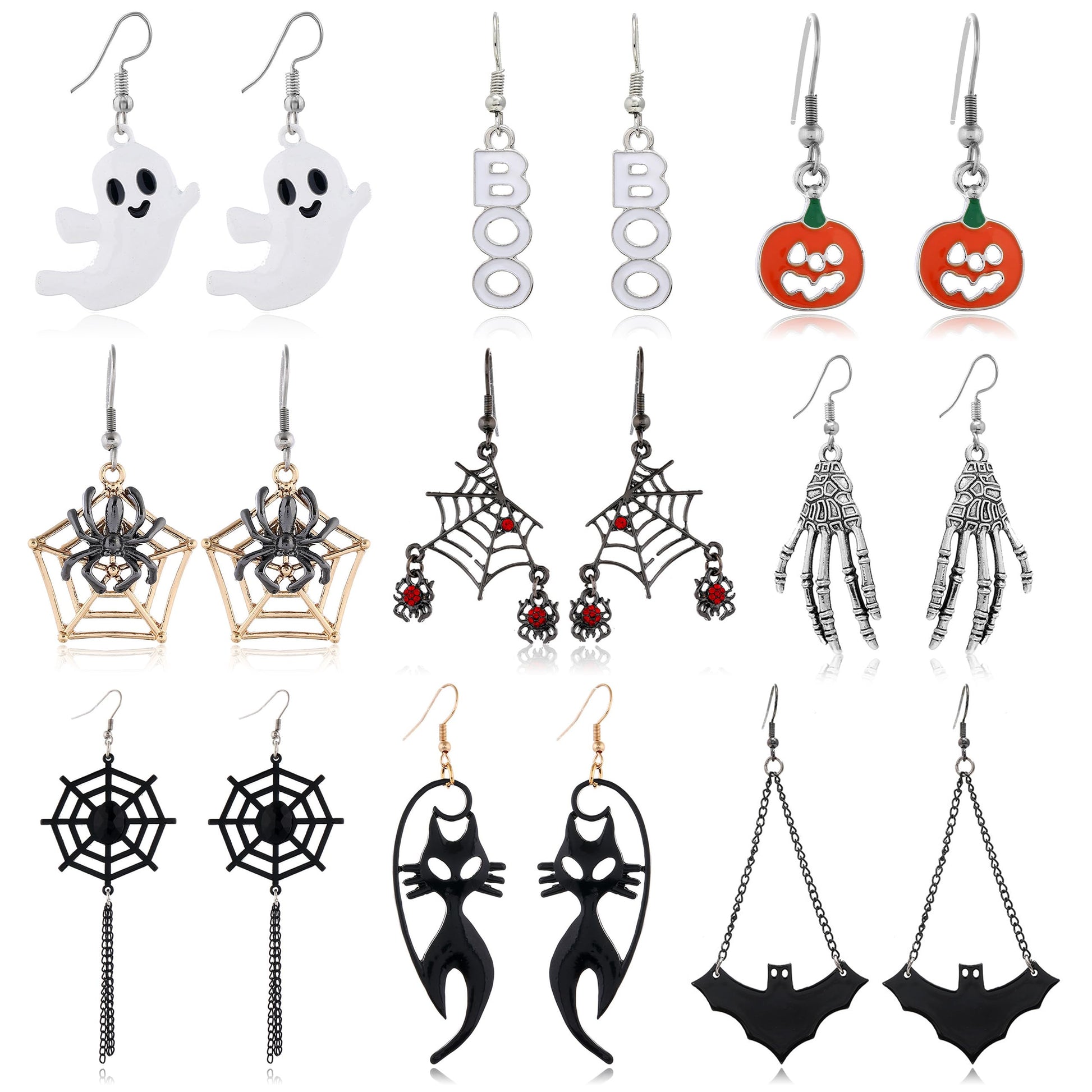 9Pairs Halloween Earrings for Women Skeleton Spider Pumpkin Ghost Bat Dangle Earrings Set Gothic Jewelry Halloween Accessories Costumes Woman 2025 Party Favors