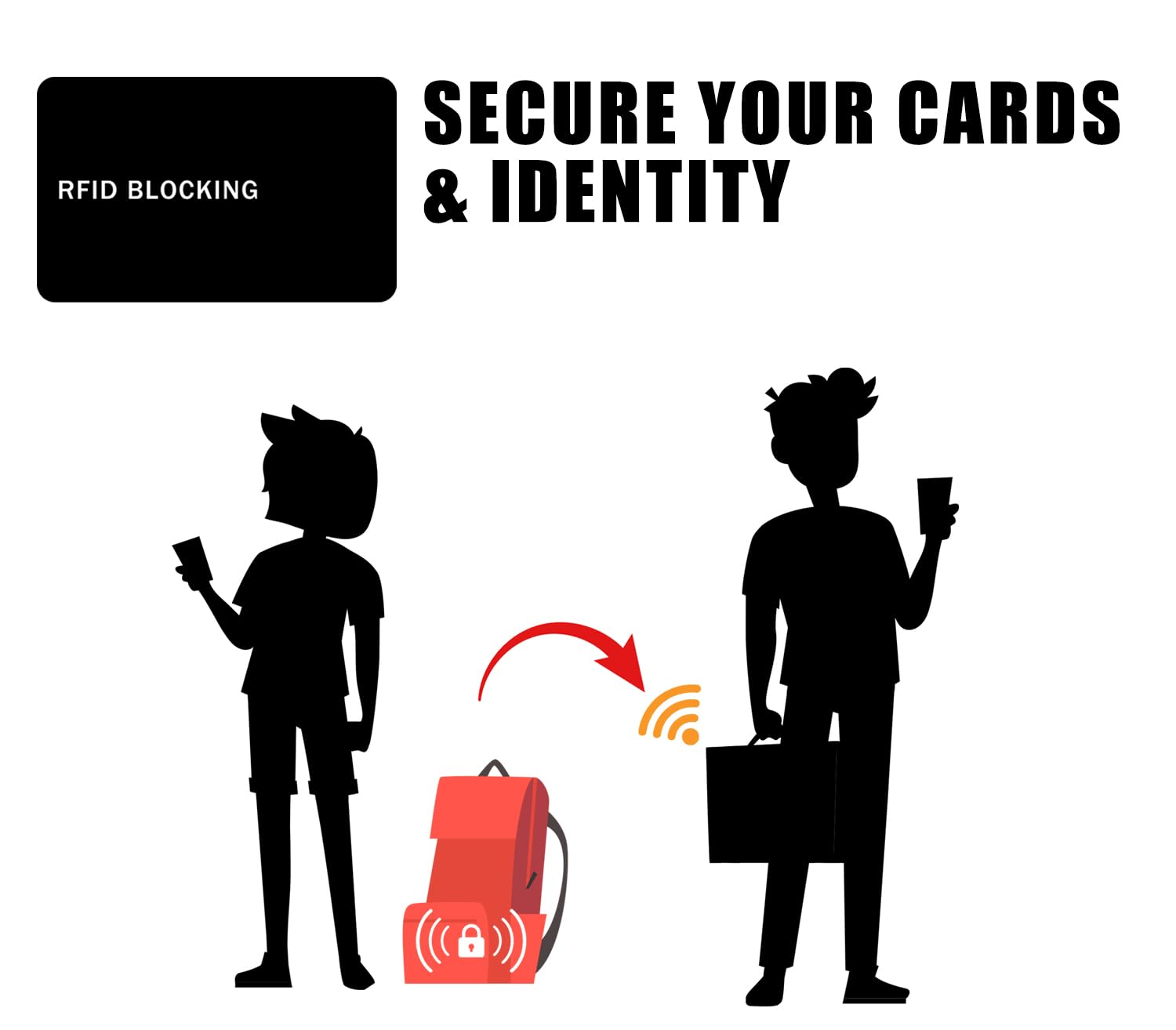 • SECURE YOUR INFORMATION - LASTEST 13.56 Mhz RFID/NFC Blocking Technology, able to block nearby scanners by generating jamming signal. This RFID and NFC signal protection card will protects your debit & ATM cards, ID, Passport, driver's licenses information within 2.4in range.