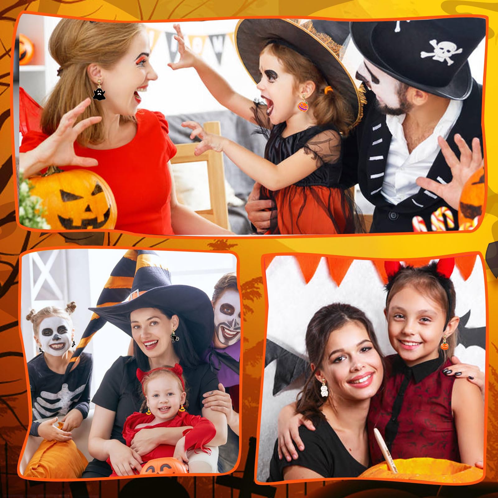 A Halloween Earrings Set of 20 Pairs Clip on Earrings for Without Pierced Ears,Vibrant Themes Like Pumpkin,Magic Broom, Fifty Hats, Crow, Bat, Black Cat