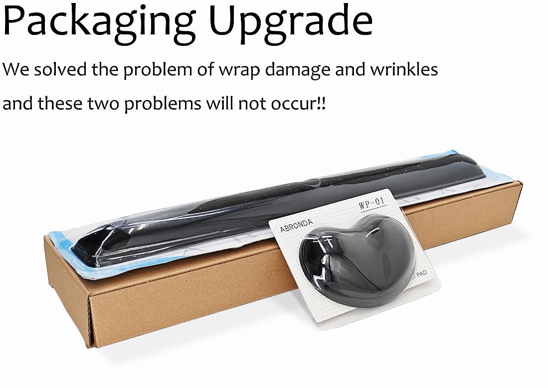 ABRONDA Gel Keyboard & Mouse Wrist Rest Set - Keyboard Wrist Rest Pad & Mouse Support for Office Gaming Pad Computer Laptop Ergonomic Comfortable Pain Relief- Pad Set (Black Pad Set)