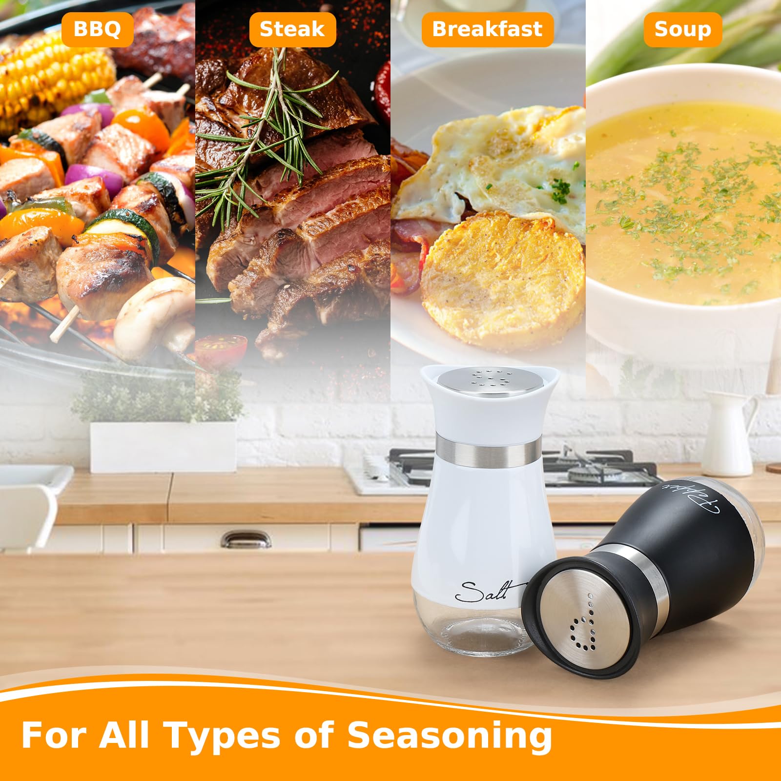 • Perfect Taste Control: These salt and pepper shakers have 11 small holes evenly distributed on the lid. Gently shake 1-2 times to evenly sprinkle salt and pepper on food, which avoids excessive seasoning or uneven taste.