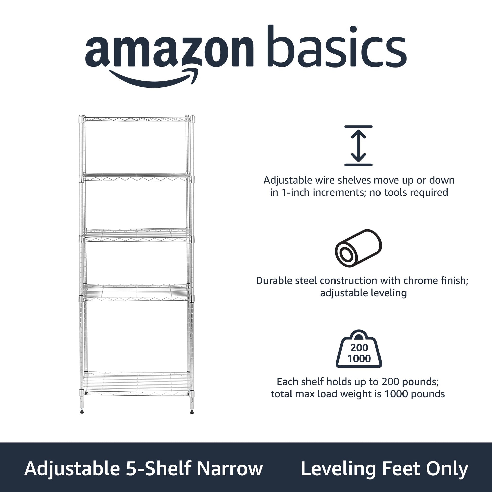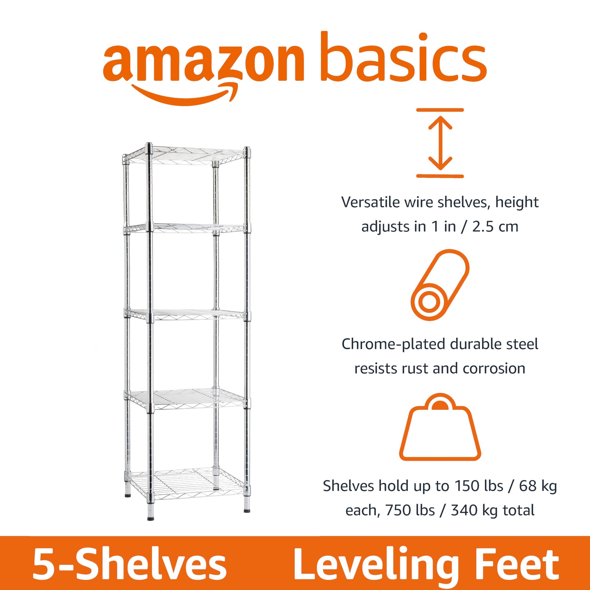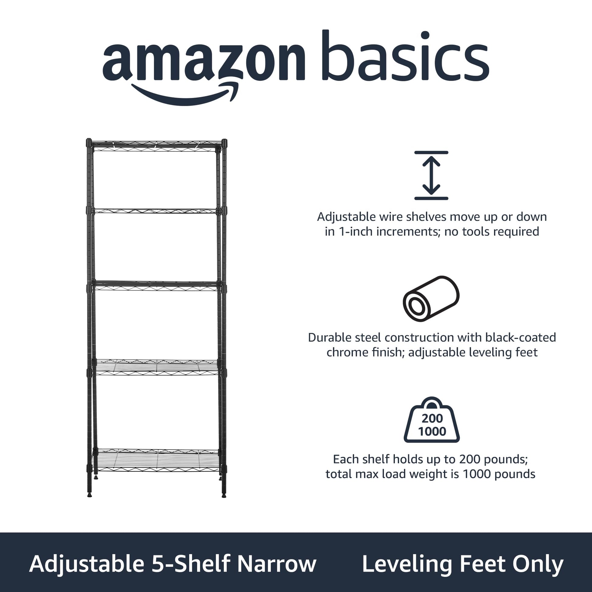 • Adjustable shelf height in 1-inch increments for easy customizing; 4 leveling feet for stability