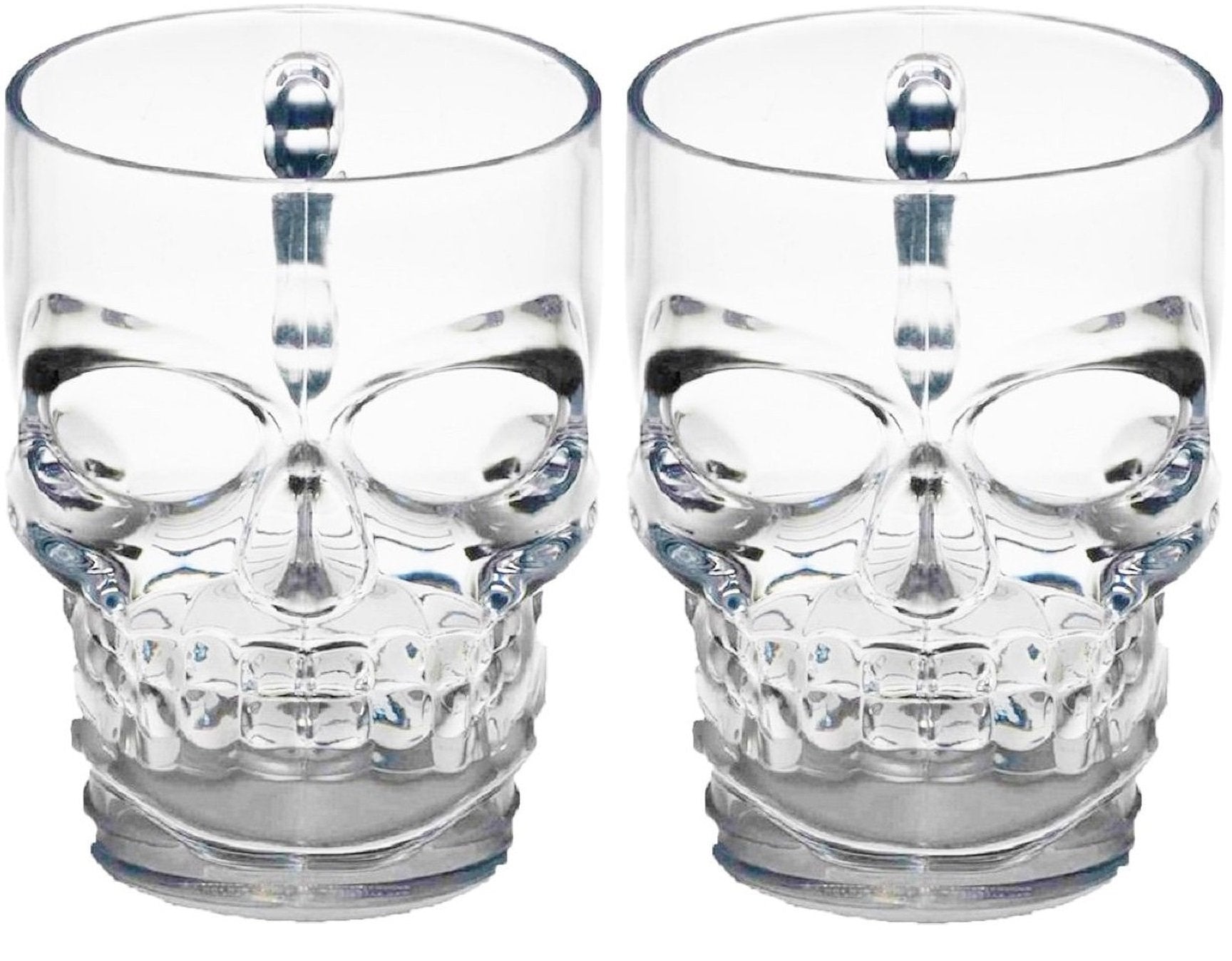 Circleware Skull Face Beer Mug Drinking Glasses with Handle, Set of 2, Heavy Base Funny Entertainment Glassware for Water, Juice and Halloween Decorations Beverage Gifts, 17.6 oz.