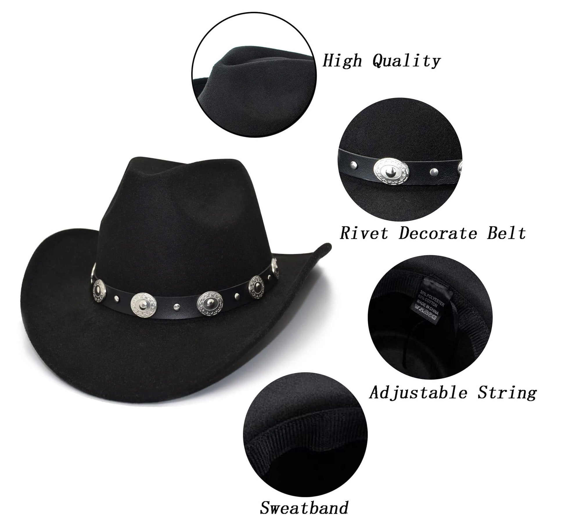 • Fabric: Men's cowboy hats made of premium quality felt, soft to touch and breathable, Breathable, lightweight and comfortable for all-day wear