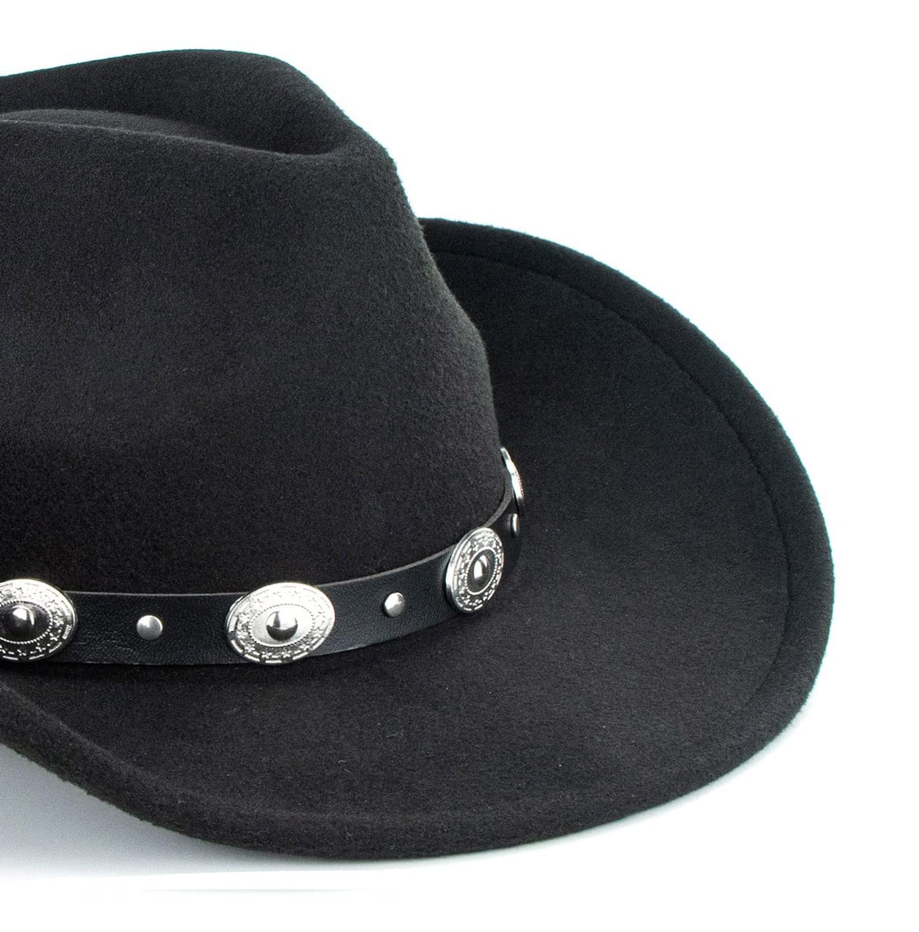 Classic Western-Cowboy-Hat Men Womens Wide Brim Cowgirl Hats Felt Fedora hat (S-M)