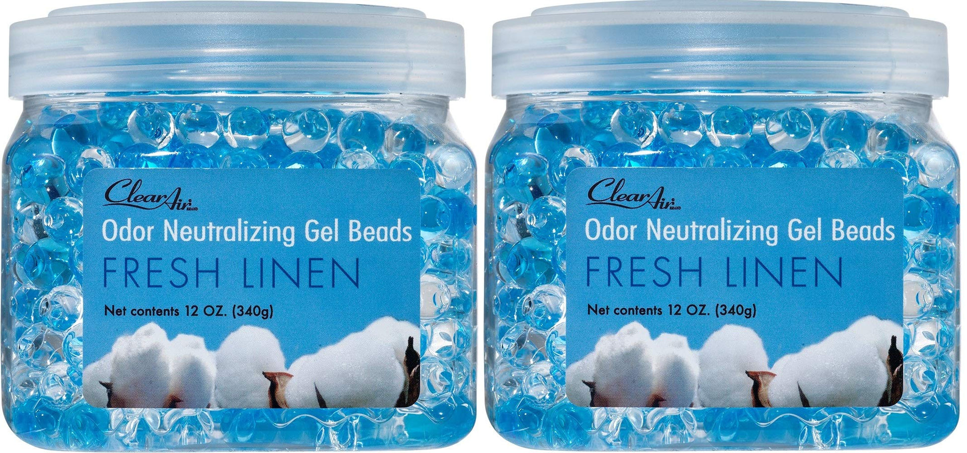Clear Air Odor Eliminator Gel Beads - 12 oz, Pack of 2 - Air Freshener Made with Essential Oils - Eliminates Odors in Bathrooms, Cars, Boats, RVs & Pet Areas - Fresh Linen Scent