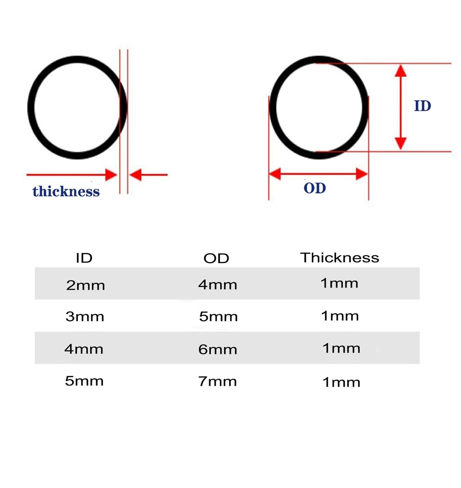 • Easy choose: We worry that you may buy wrong sizes, because the 2mm 3mm 4mm 5mm ID are too small. We choose 4 adjacent inner dimensions packed in a clean, sturdy box. There is always one correct dimensions right for you this time or next time.