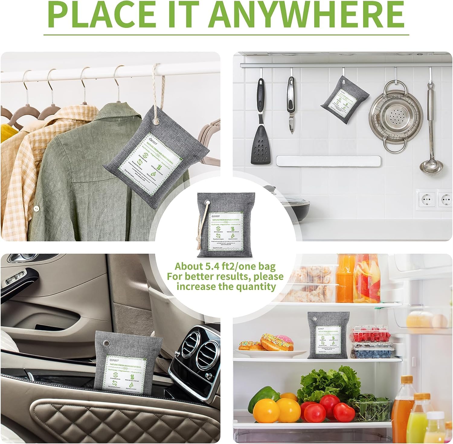 • EFFECTIVELY REMOVES ODORS: Bamboo charcoal absorbs 10x the odor of regular charcoal bags; eliminating musty odors with ease, quickly transforming your home air quality! We recommend placing multiple air purifier bags to specific areas around the house to maximize the air purification effect.