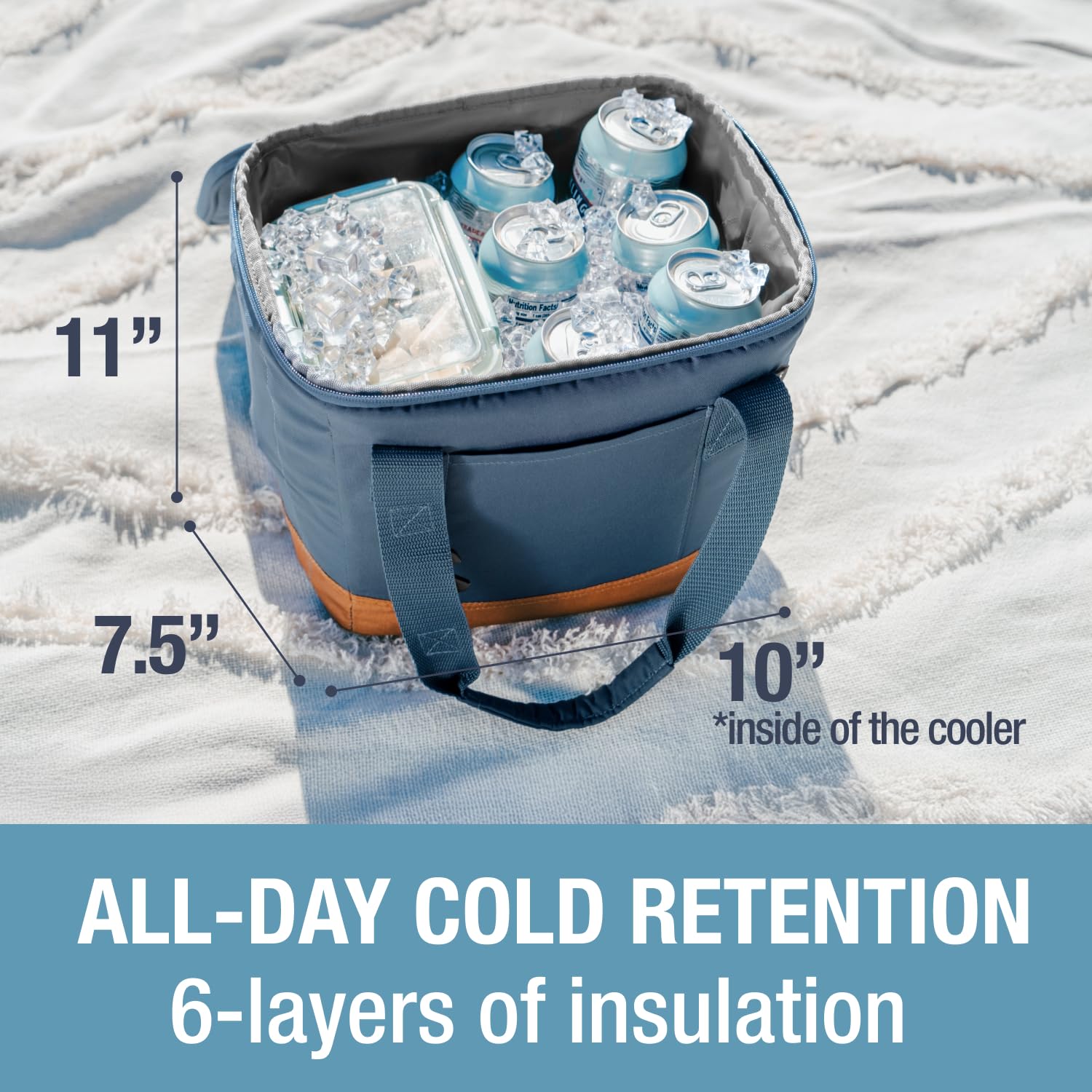 CleverMade Pacifica Collapsible Insulated Cooler Bag – 18 Can / 13 Qt Leakproof Soft Cooler for Beach, Travel, Car – Bottle Opener – Ocean