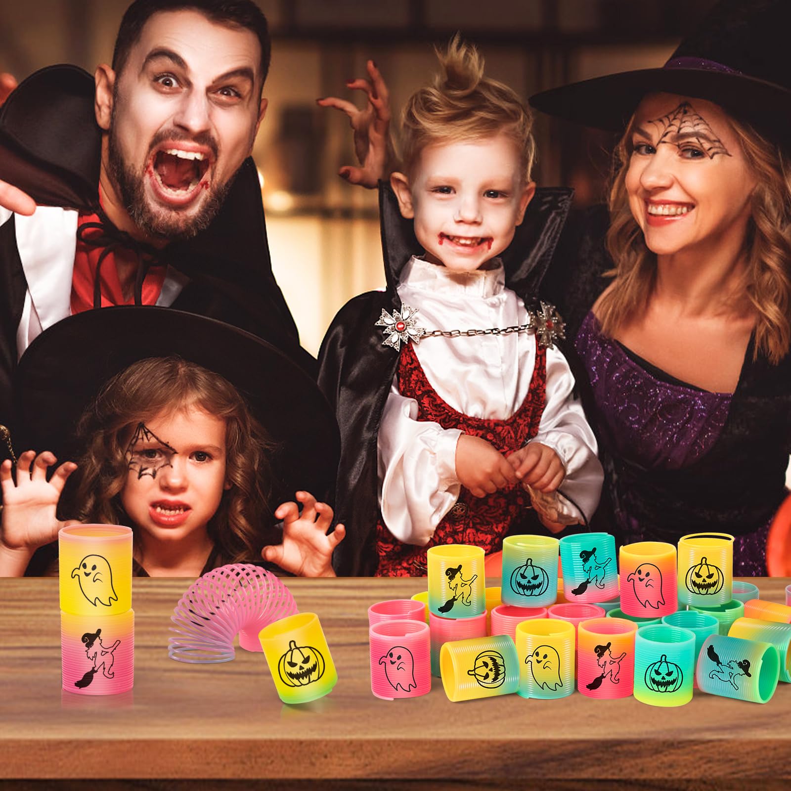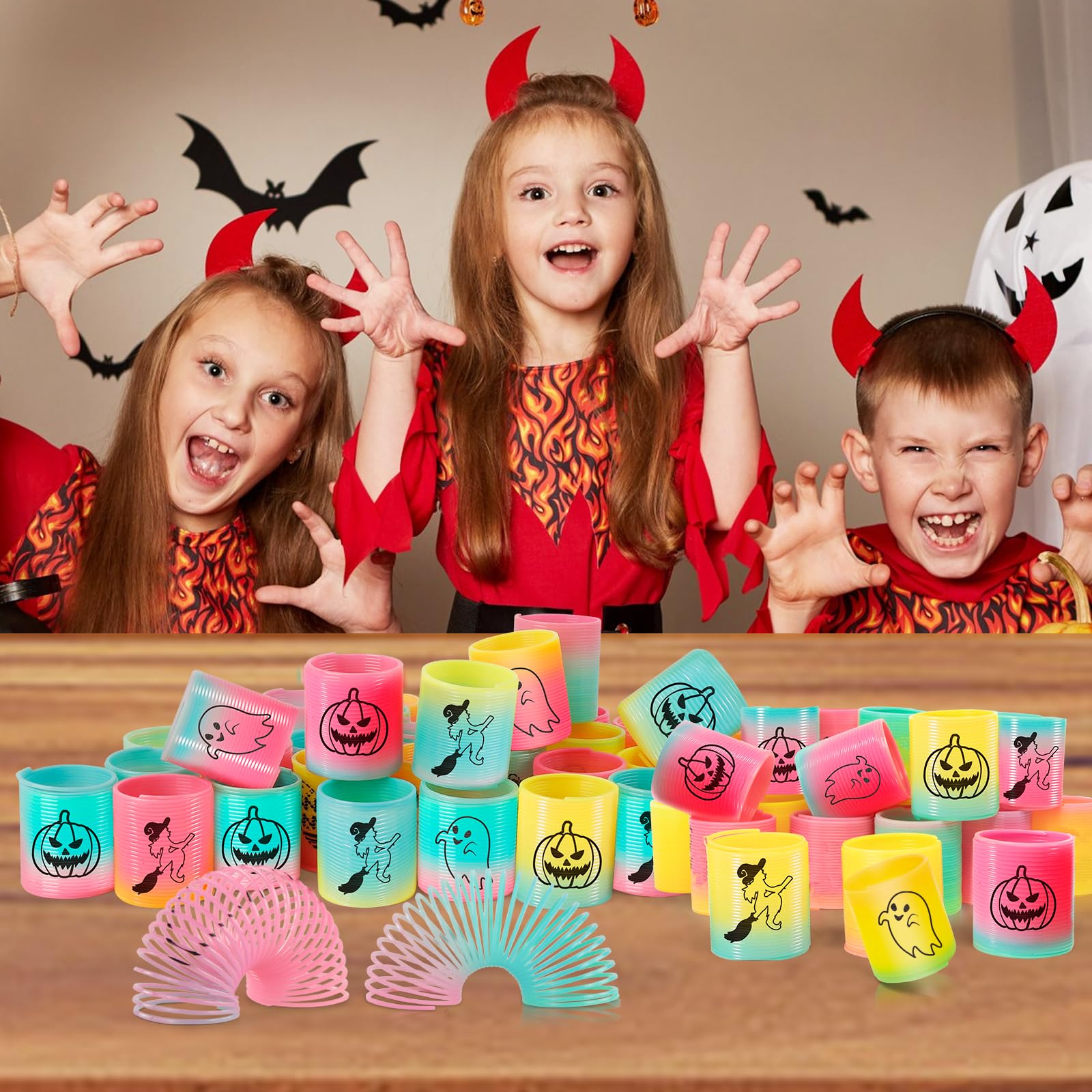 CLEVERZONE 36 Packs Spring Rainbow Magic Fidget Stress Coil Mini Springs Bulk Toys Party Favor Birthday Carnival Prize Goodie Bag Stuffers For Kids Boys Girls (Halloween)