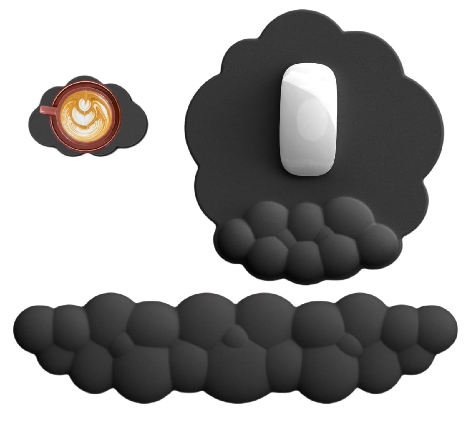 • Cloud-shaped Design: This keyboard wrist rest and mouse pad set features a unique cloud-shaped design, offering an ergonomic fit that perfectly supports your hands. The textured surface enhances airflow, keeping your wrists cool and comfortable while preventing sweat or discomfort during extended use. Stylish and functional, these aesthetic desk accessories make the perfect companion for both work and study sessions, adding a touch of charm to your workspace