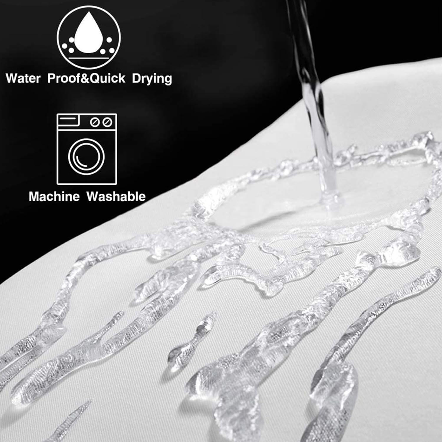2. 72x72inch. Waterproof. Designed to fit standardized bath tubs, Prevent water from splashing out of the shower stall.