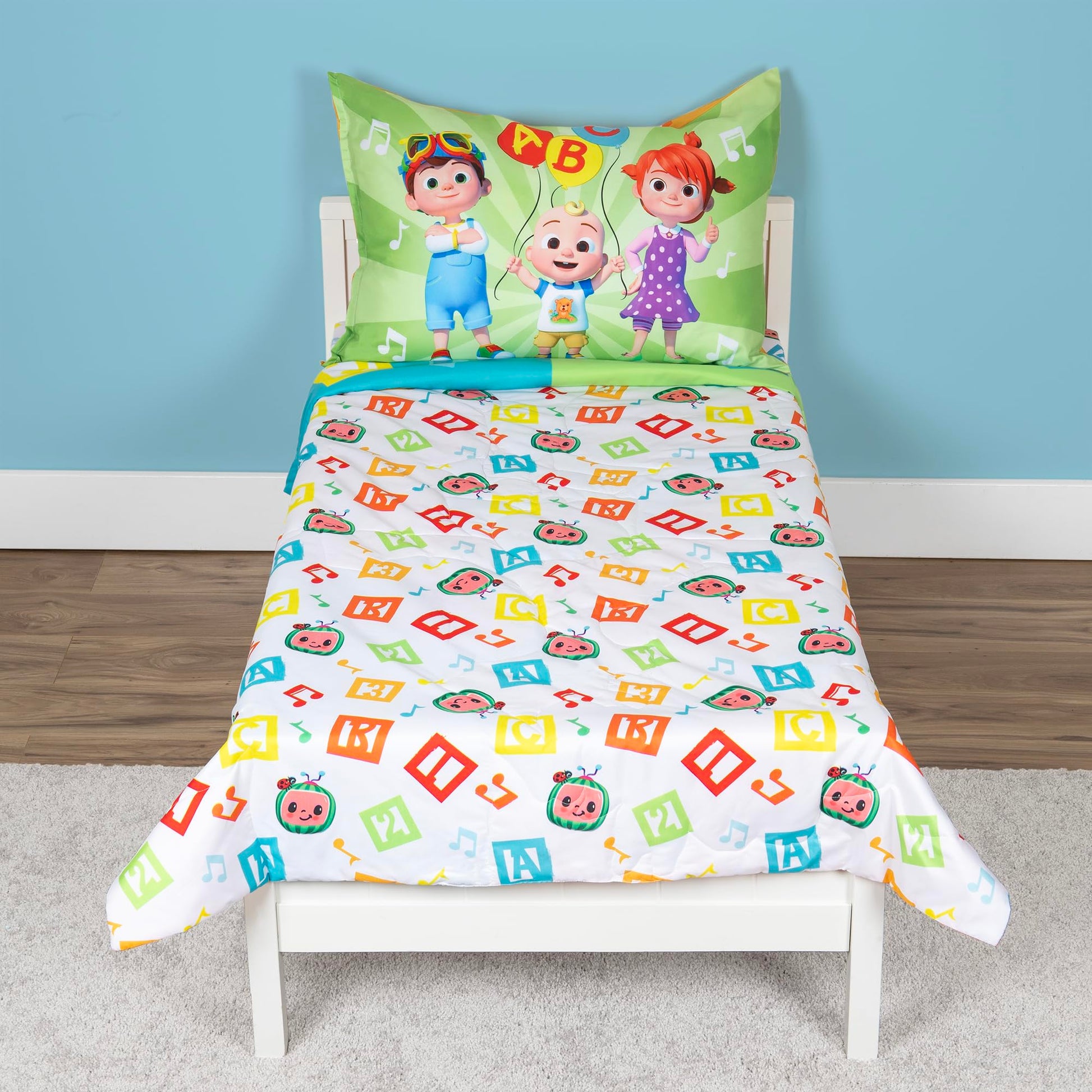 • Cocomelon 'Learning is fun' 4-Piece Toddler bed Set, featuring the fun and educational characters from the popular preschool YouTube series are sure to delight young fans and inspire dreams of learning, fun, music and playful adventures