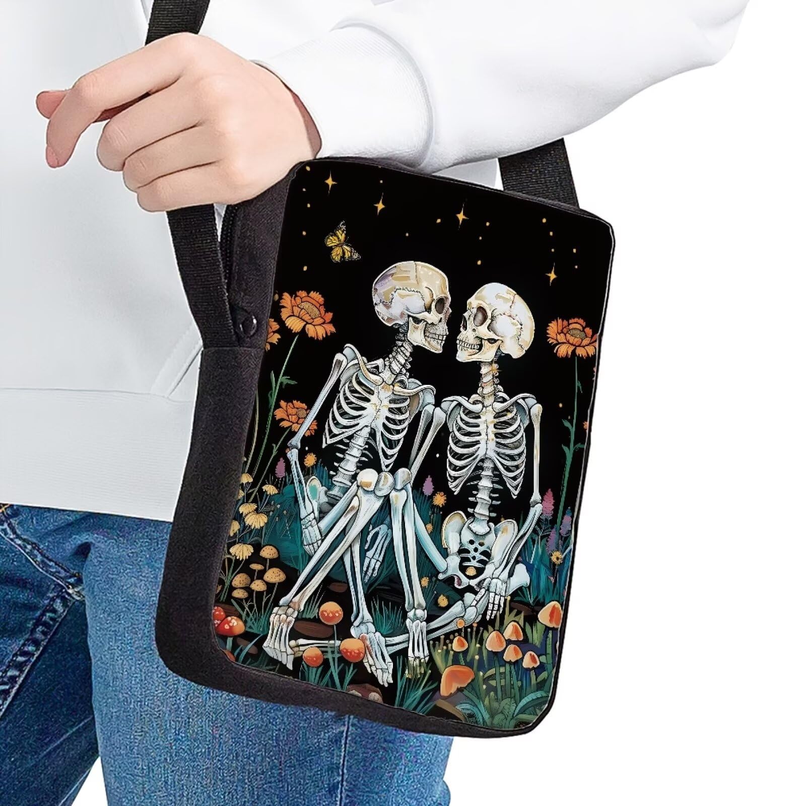 COEQINE Halloween Purse Skull Crossbody Bags Goth for Women Men Goth Teen Purse Novelty Travel Skull Couple Pattern Mini Messenger Bag for Teens Party