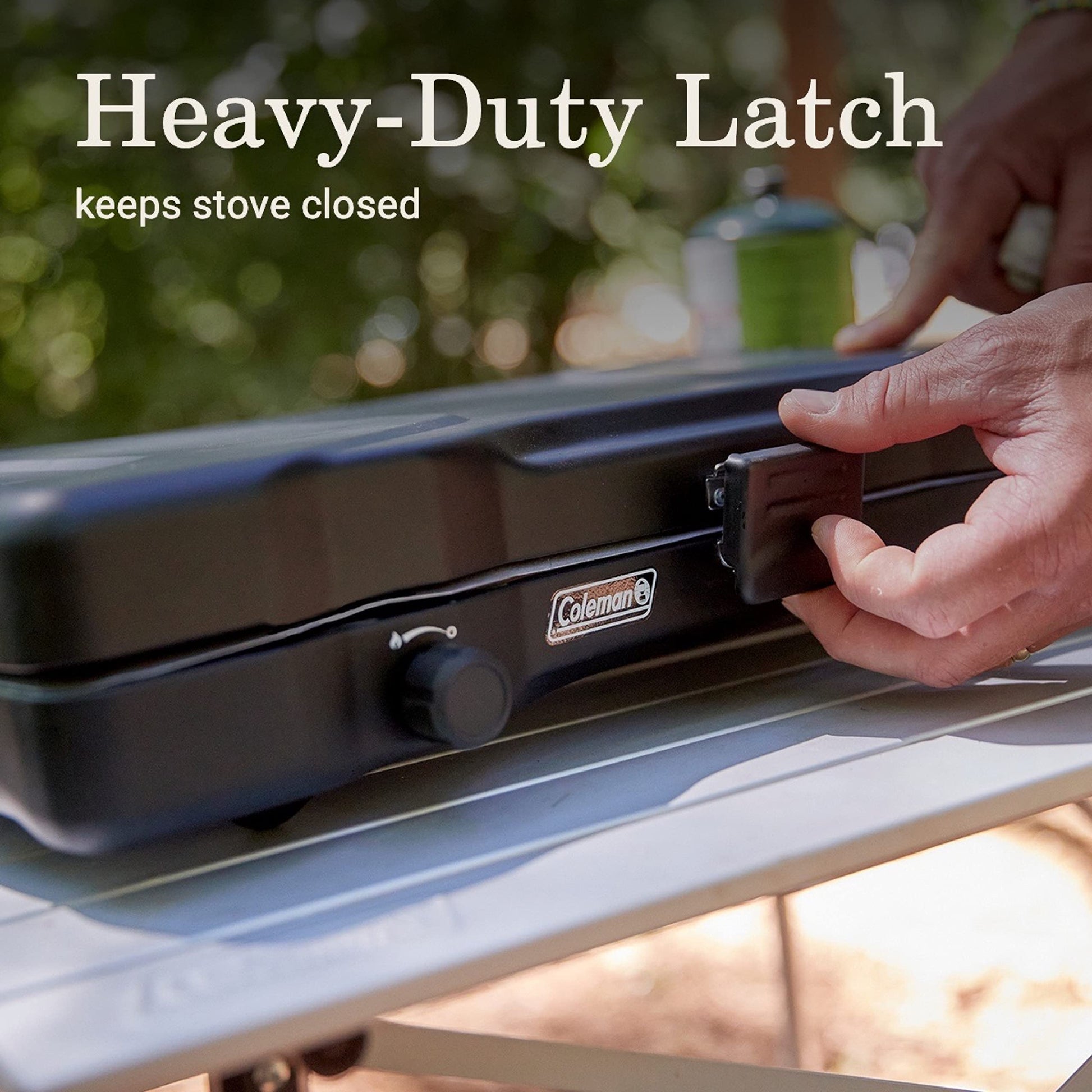 Details: Hit the road with a Coleman Triton 2-Burner Propane Gas Camping Stove which makes it easy to cook great meals outdoors. It has a heavy-duty latch so you can keep the stove closed if you step away for a minute, and its durable, chrome-plated grate is removable for easy cleanup. Because we know cooking out in the elements can be rough, this stove has two guards to shield the burners and flame from the wind, as well as improved knob rotation for precise temperature and simmering control.
