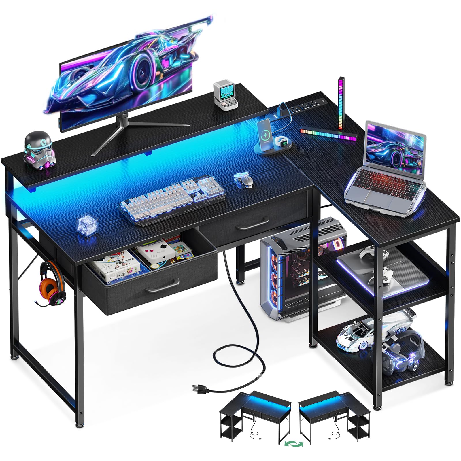 • 【Large Storage Capacity with Drawers】This l desk is designed with 2 easy-to-assemble fabric drawers, providing ample storage for everything you need during your work or study day. The 2 storage drawers can easily stash away items, perfect for organizing your documents, office or school supplies, gaming equipment, etc. You will always have an organized desktop after owning it.