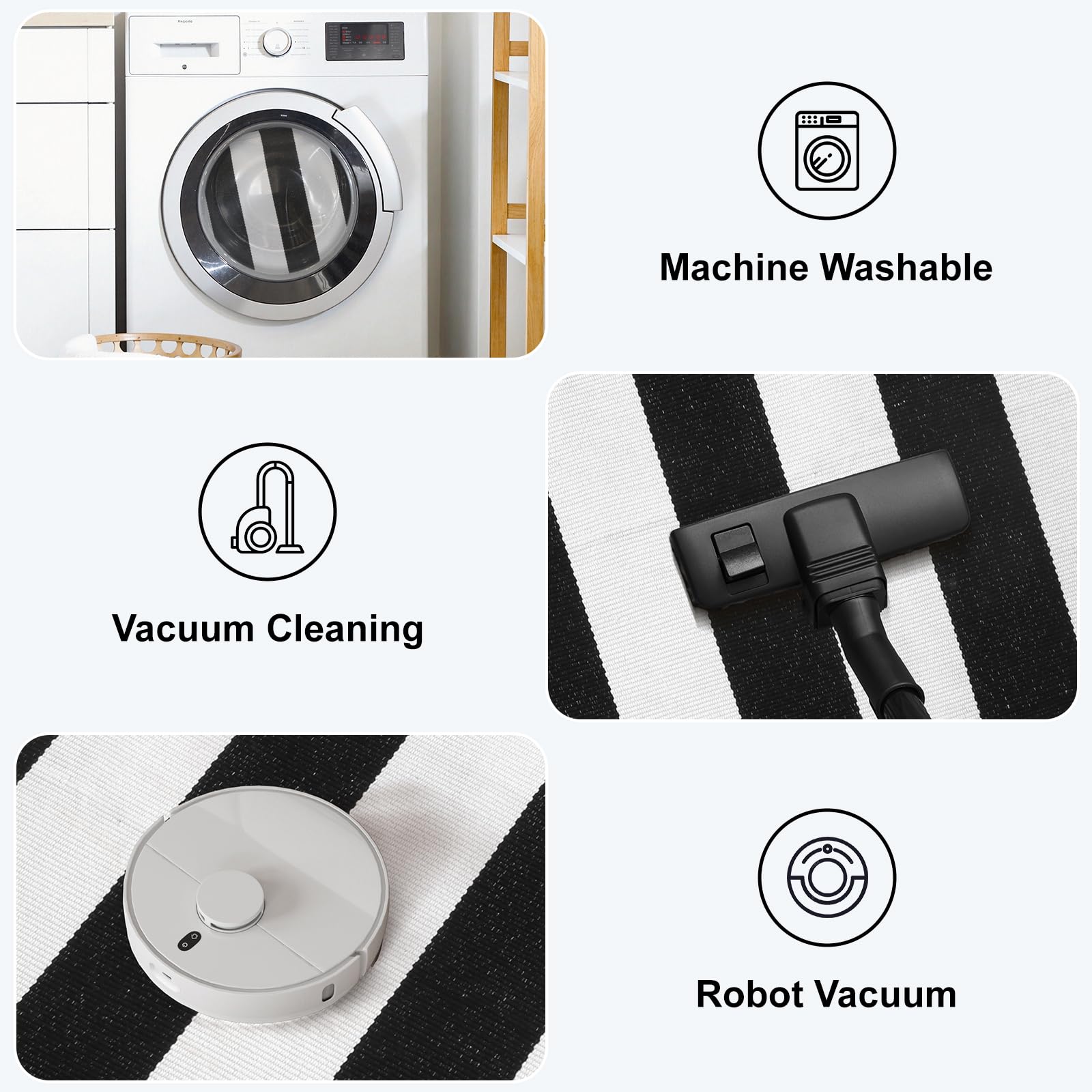 • ⭐【CLASSIC PATTERN DESIGN】: Classical black, white striped style, super fashion and modern, chic and trendy look rug is the perfect way to elevate your farmhouse décor