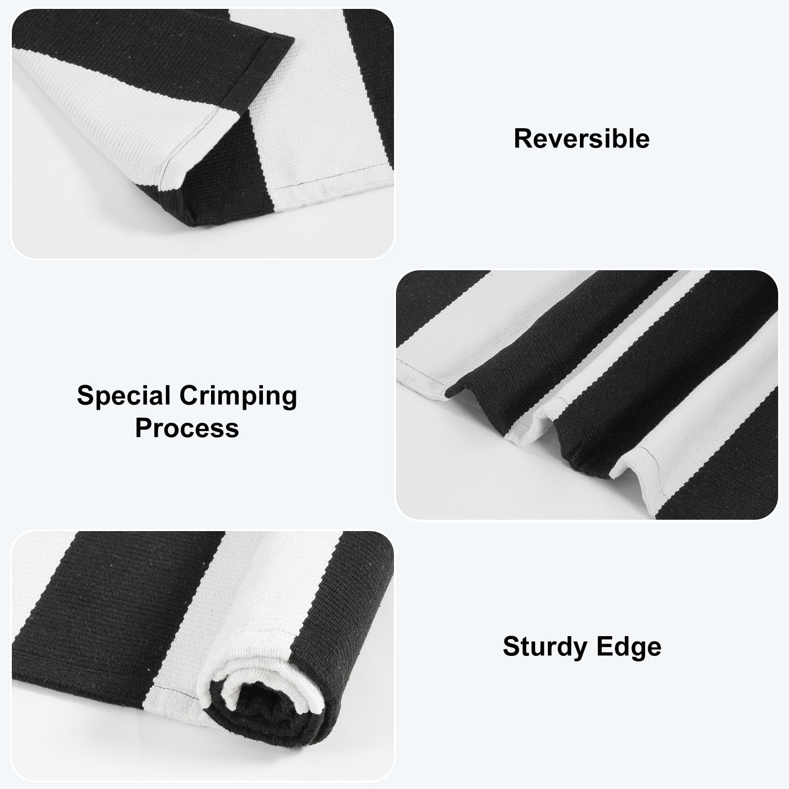 • ⭐【COTTON LAYERED DOOR MATS】:Handmade woven outdoor rugs with classic black, white striped pattern, environmental protection fabric, resistant and durable cotton outdoor rug Runner will allow for long-lasting use