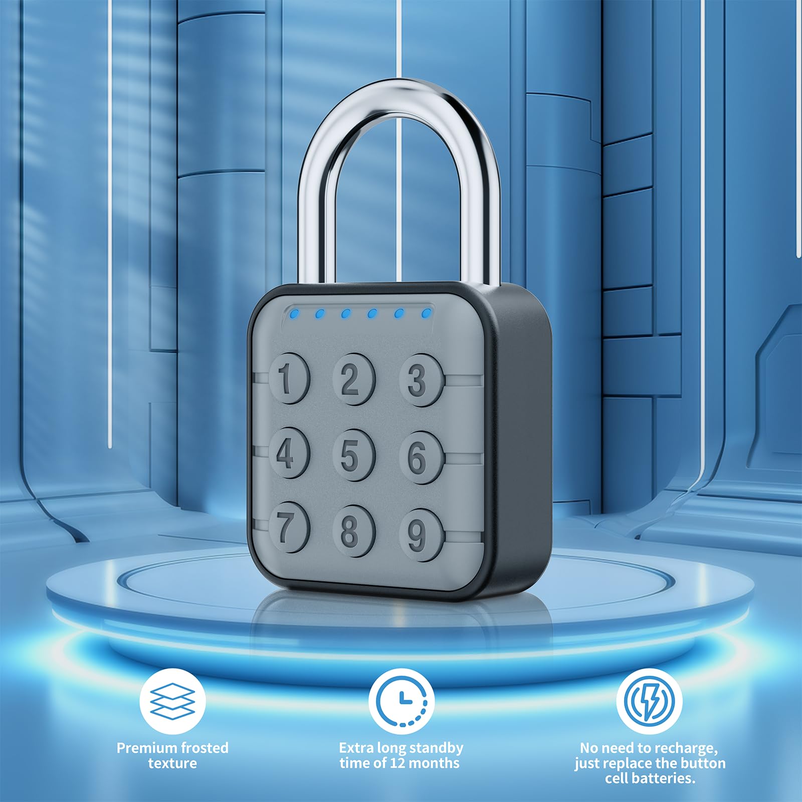 • Long-Lasting Battery & Ultra-Low Power Mode - Enjoy up to 12 months of standby time and over 3000 unlocks per charge, perfect for those who want a hassle-free padlock with code. Compact and energy-efficient, great for outdoor gates, lockers, and travel bags.