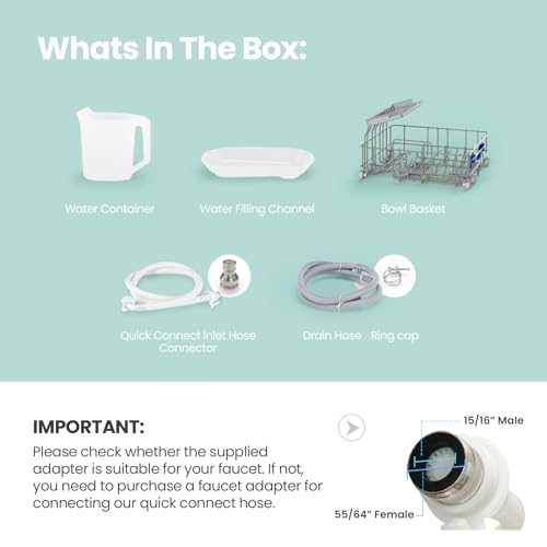 • [ Ultra-compact Design]: The ultra-compact design allows the dishwasher to wash 30+ items(Max to 9.5-inch plates) at a time while occupying a small area, which is ideal for small houses, apartments, dorms, boats, and campers/RVs.
