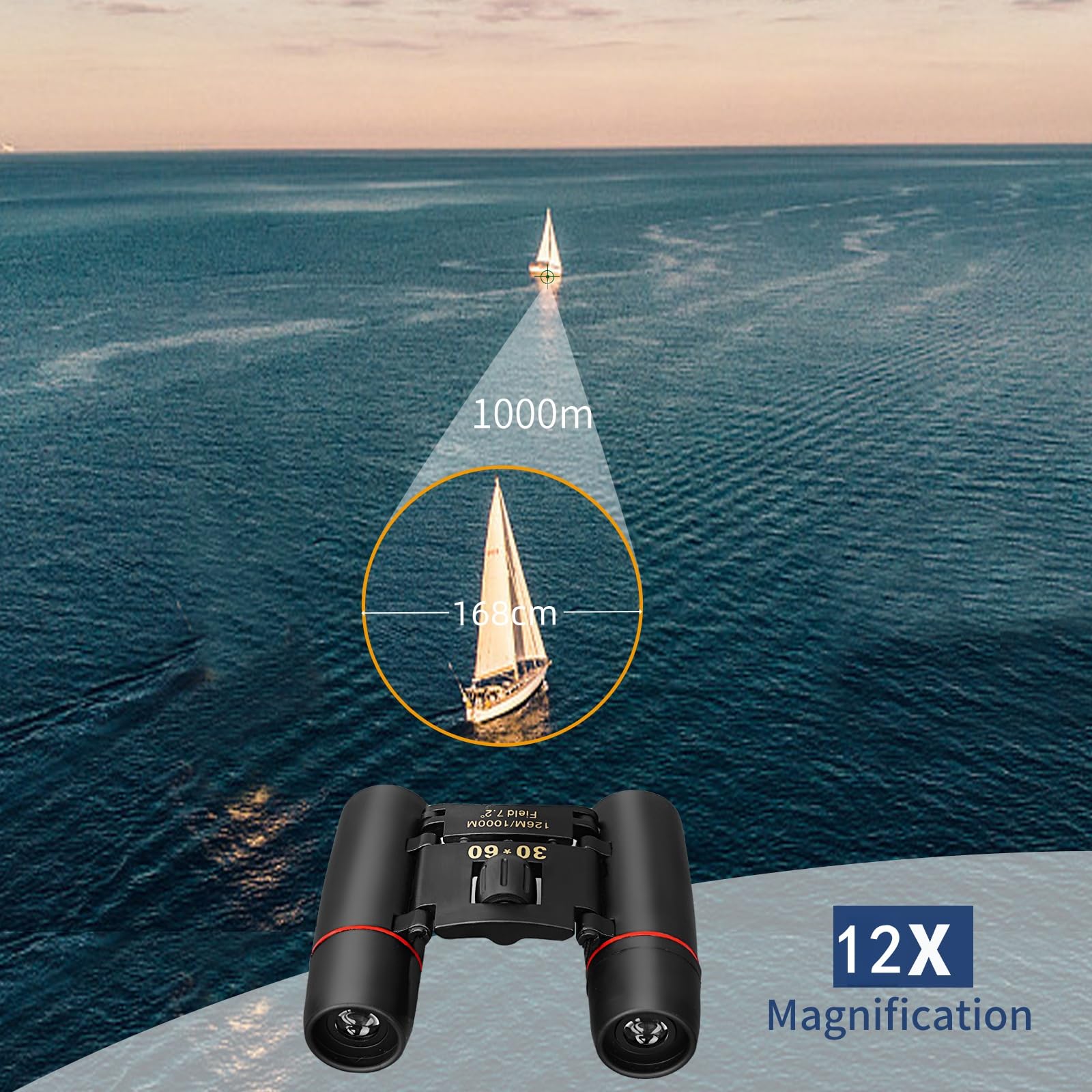 • 【Wide and Clear Field of View】- Professional Ultra Wide Angle 30*60 Optical Binoculars with 12x magnification, using high quality Bak-4 prisms and optics for truer color reproduction and clearer observation images.126M/1000M large field of view provides maximum image brightness in low light and long distance conditions, allowing you to get amazingly clear details from birdwatching, wildlife, and exploring.