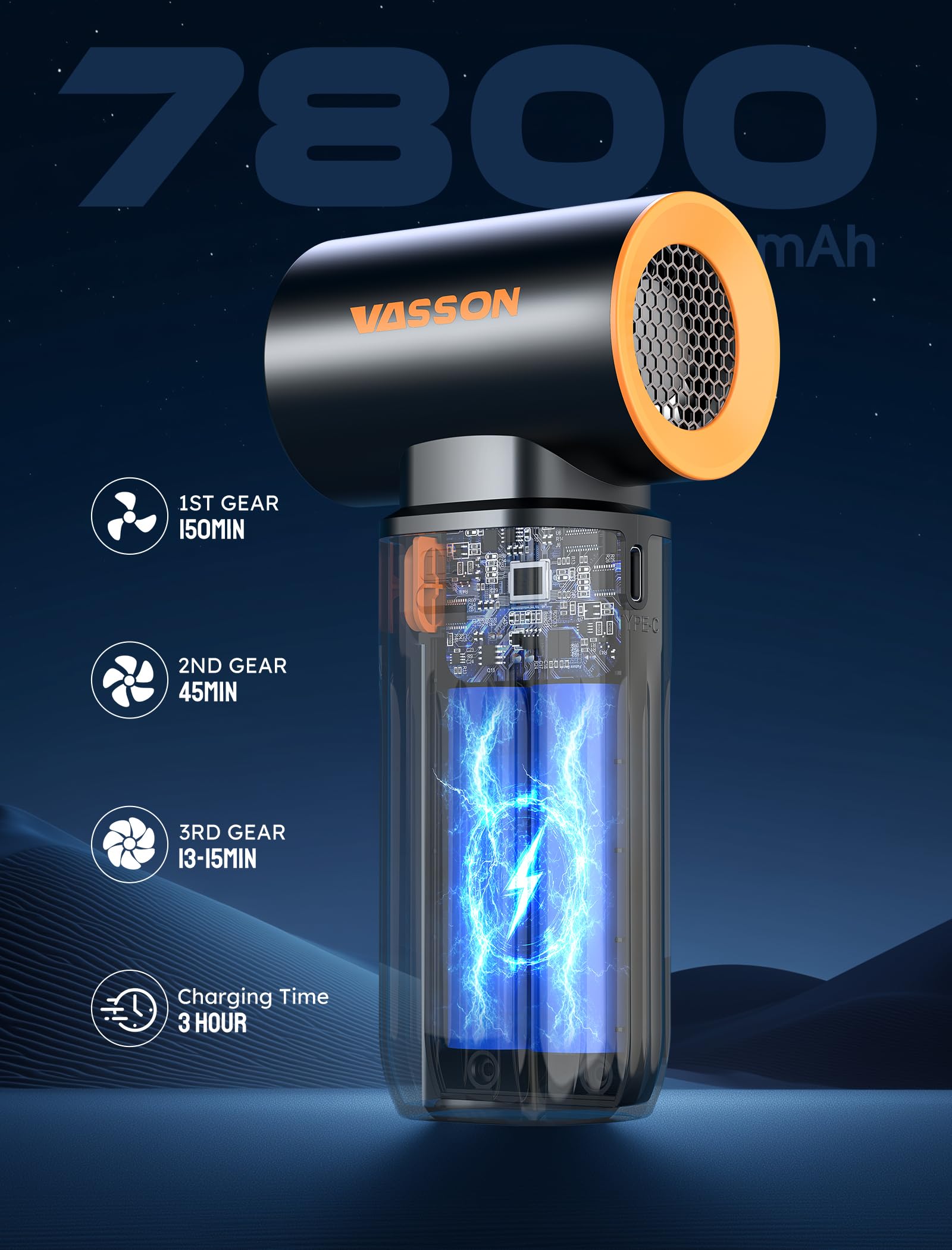• Fast Charging & Long Runtime: The air duster supports Type-C fast charging and fully charges in just 3 hours. On low gear, it provides up to 150 minutes of use.