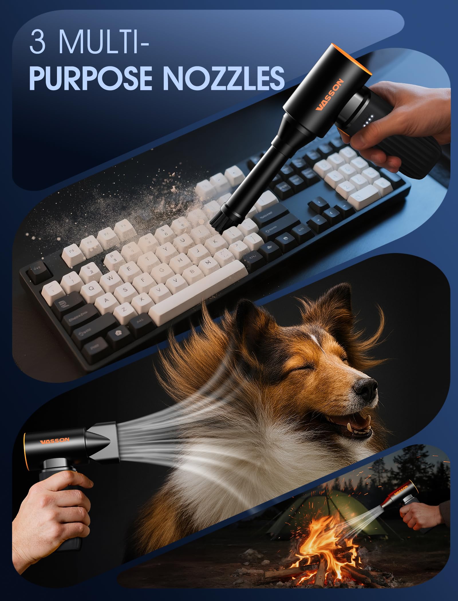• Multi-Functional Cleaning Tool: The air duster comes with 5 nozzles, 1 brush, and a storage bag. It’s suitable for cleaning keyboards, computer towers, car mirrors, vents, sofa crumbs, and more. Beyond cleaning, this versatile electric air duster can inflate, blow snow, start a barbecue, or even act as a mini cooling fan.