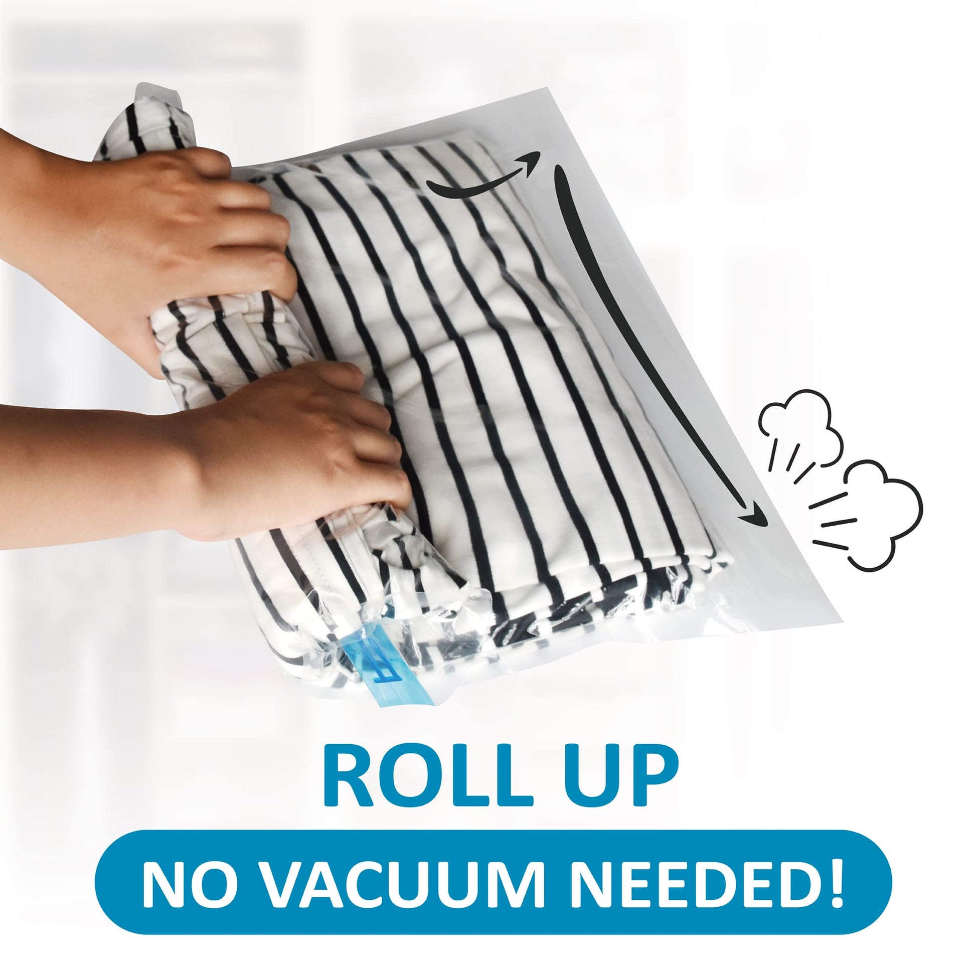• Travel Essentials: Our compression bags for travel save your storage space with no vacuum needed. With hand roll, the bag will compress the clothing. Multi-purpose uses for travel accessories, trips and home.