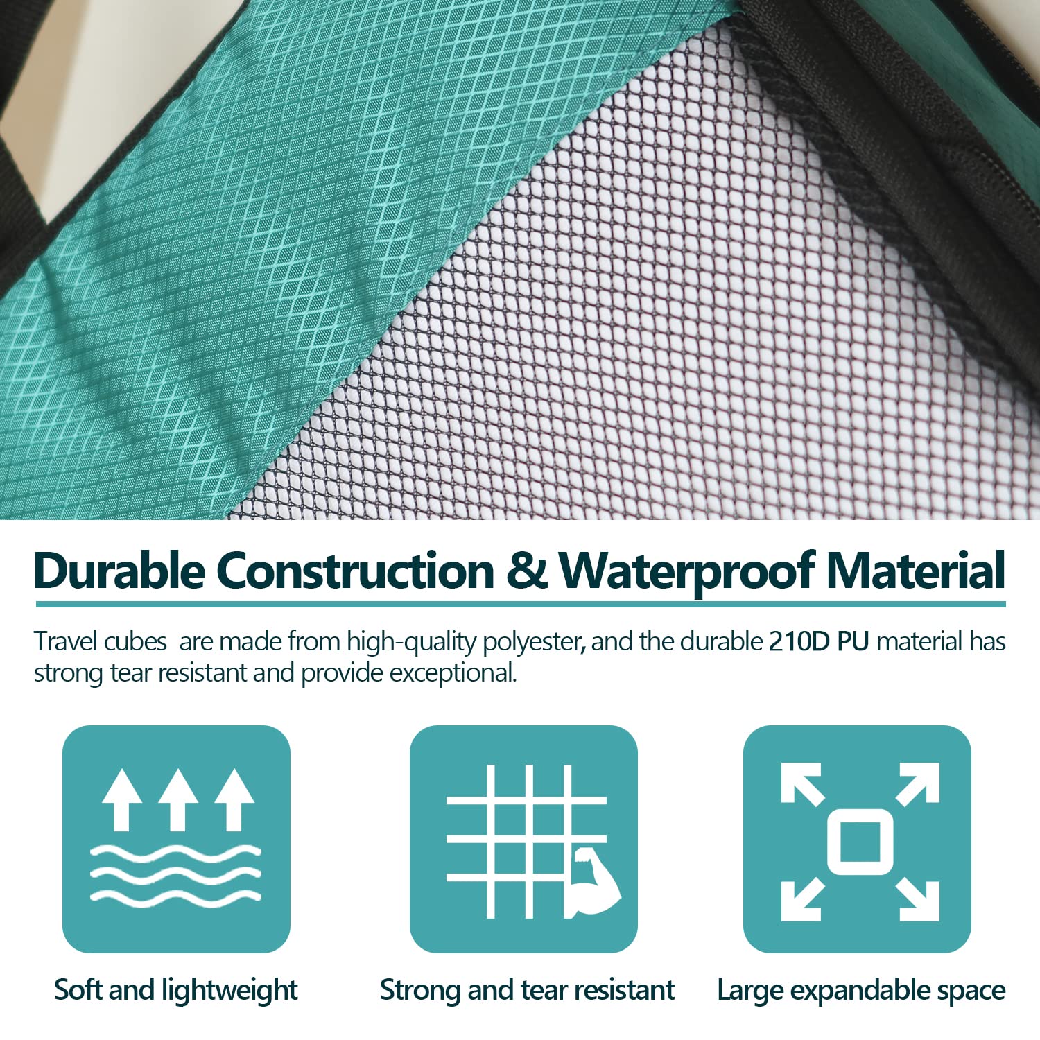 • 【Selected Premium Material】: The compression packing cube set is made of 210D diamond lattice waterproof polyester fabric, soft, lightweight, tear-resistant, and expandable. The smooth zipper makes this compression packing cube set easy to stretch and more durable.