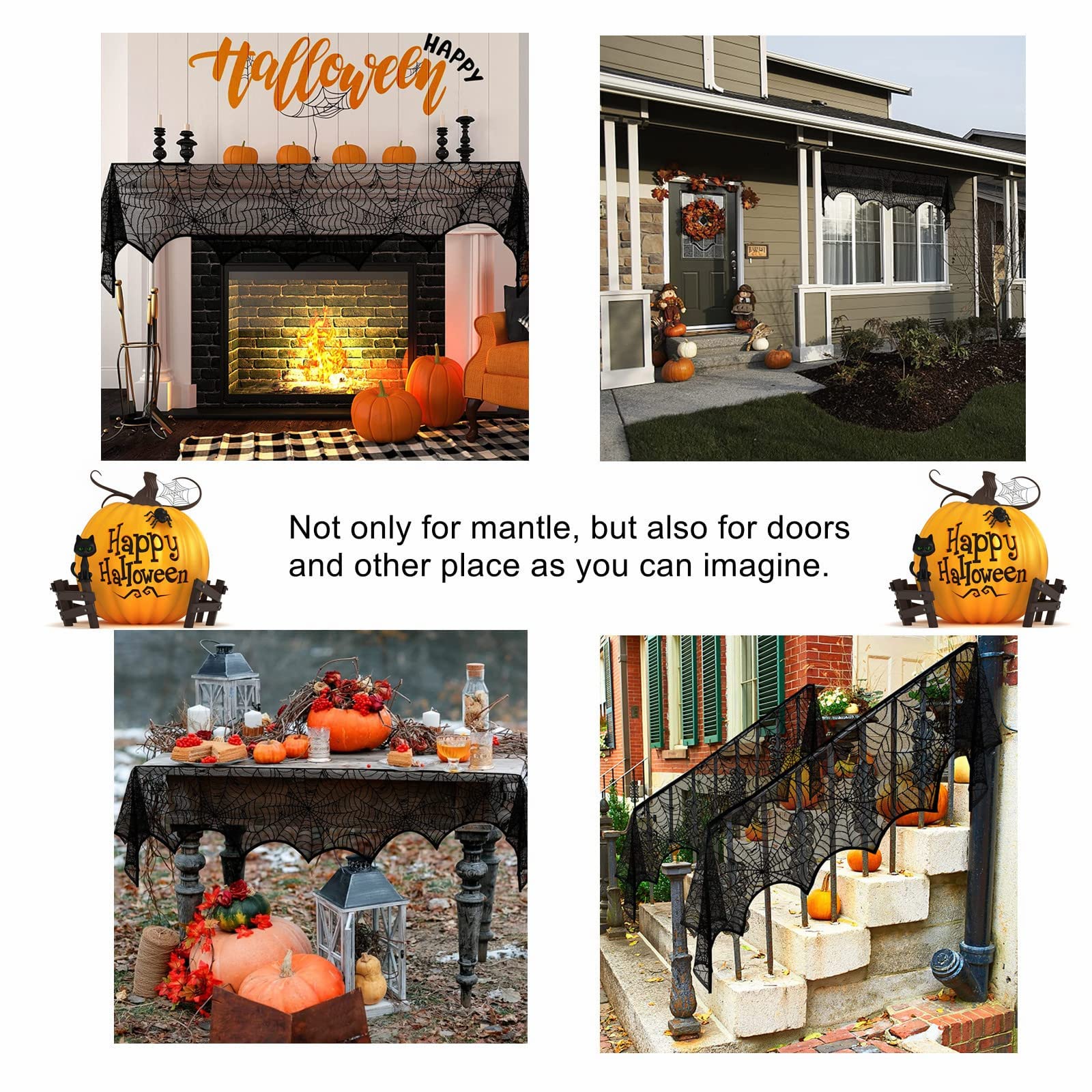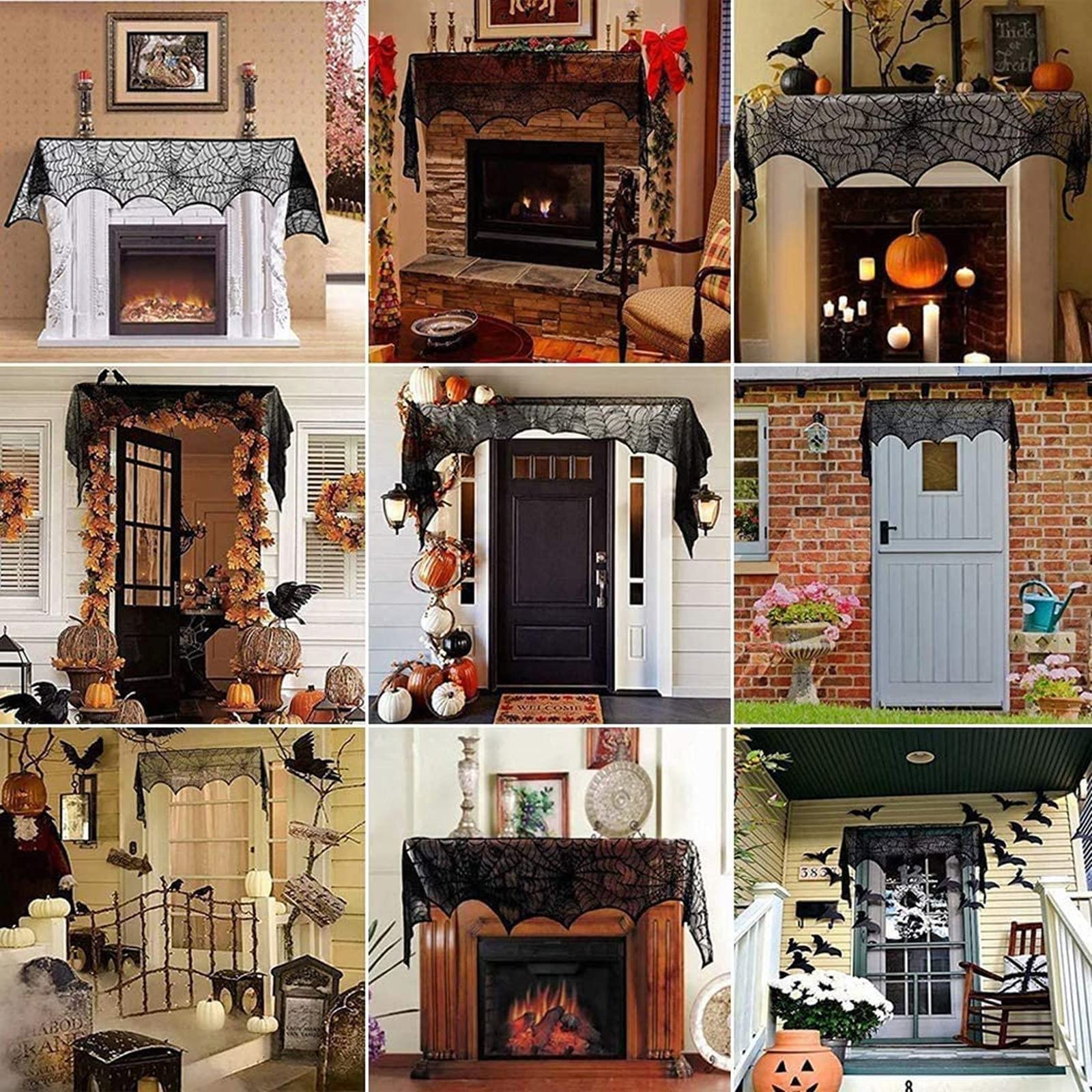 • Soft Material & Popular Size: 18 x 98inch Black lace fireplace mantle scarf features spider web design, machine washable, hand washable, very durable.