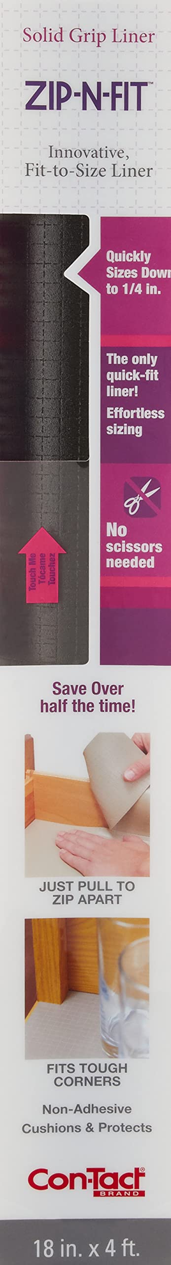Con-Tact Brand Adhesive Zip-N-Fit Drawer Liner, Solid Grip and Non-Slip Shelf Liner, Suitable to Use in Home, Office, Garage, and More, 18" x 4', Black, Pack of 1