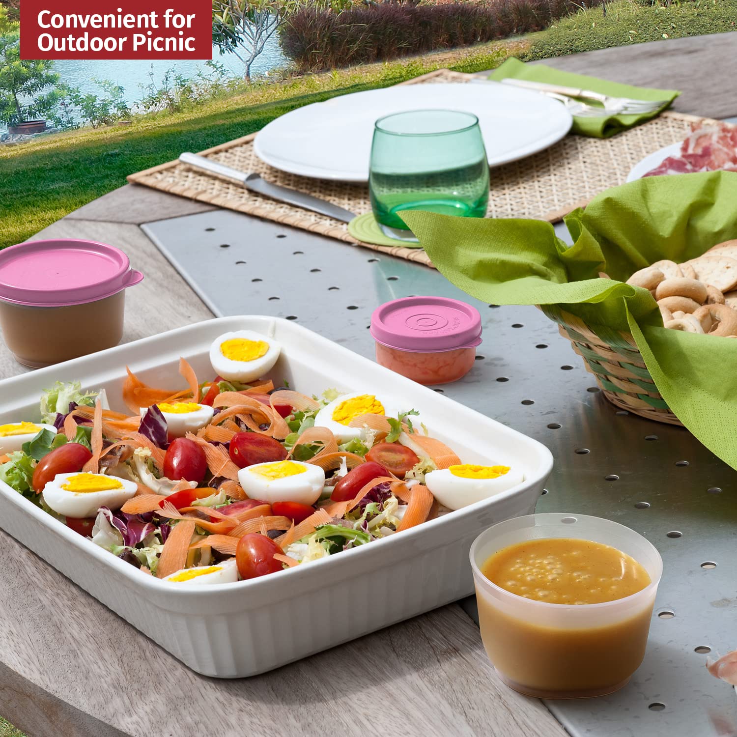 Condiment Cups Containers with Lids- 8 pk. 2.3 oz.Salad Dressing Container to go Small Food Storage Containers with Lids- Sauce Cups Leak proof Reusable Plastic BPA free for Lunch Box Picnic Travel