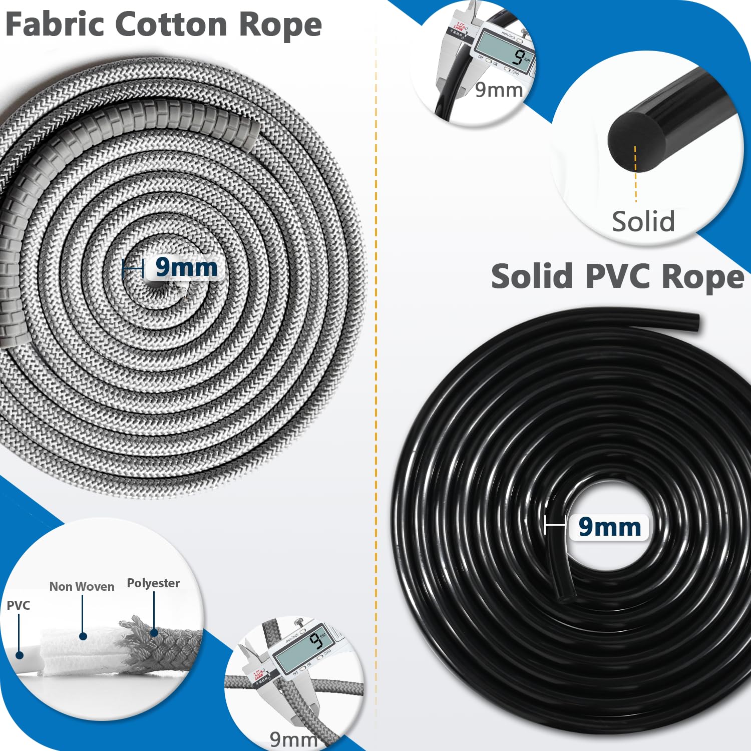 • 【2 Durable & Adjustable Ropes Combination】Skipping rope featuring a premium combination of a 9mm Thickened Cotton Rope(10ft) and a 9mm Solid PVC Rope(10ft), allowing you to easily switch between different training ropes to achieve various training goals. Suitable for a wider range of surfaces, it adds variety and excitement to your daily jump rope routine, remaining durable even after extended workouts