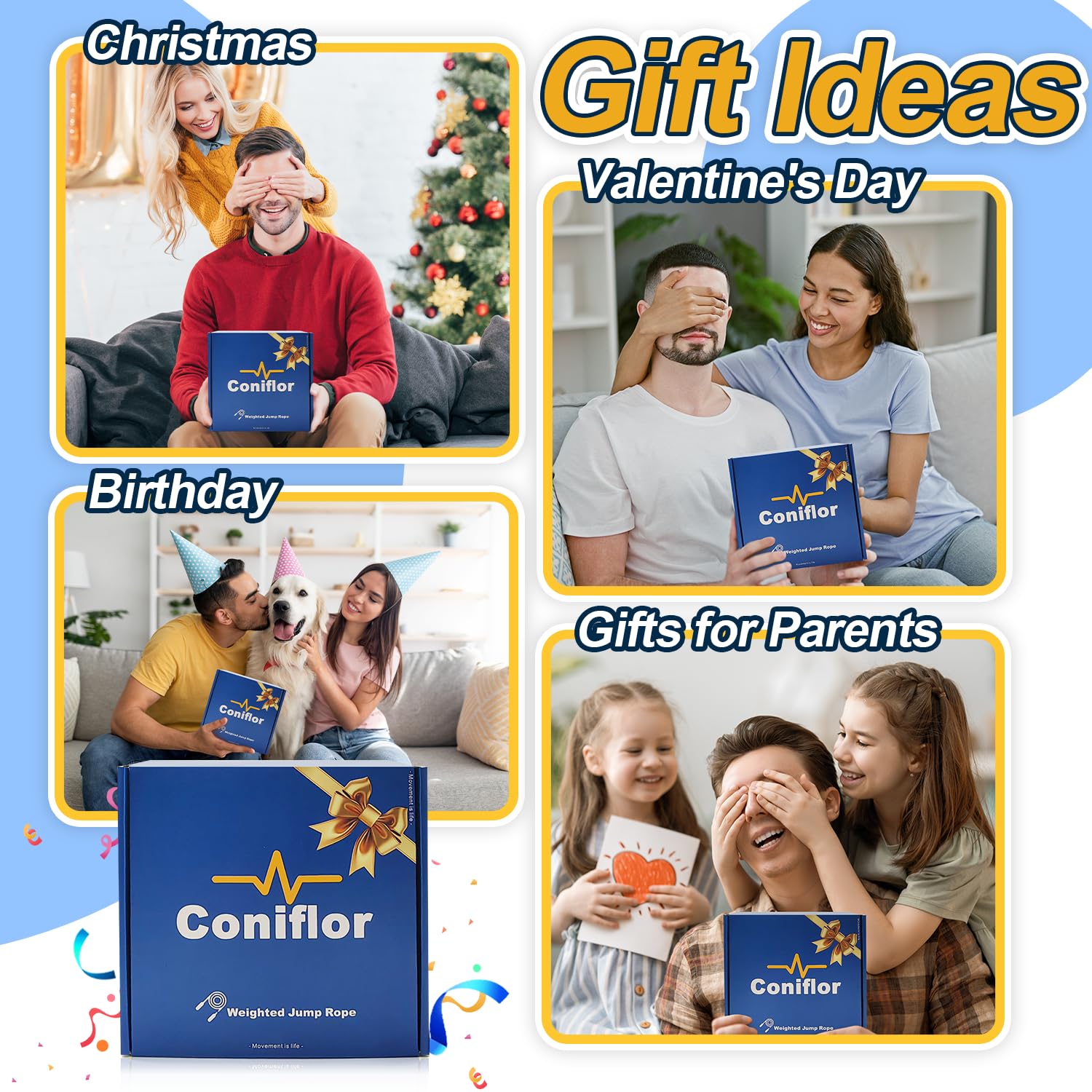 Coniflor Weighted Jump Rope, 1LB Tangle-Free Ball Bearing Rapid Speed Skipping Rope for Men Women, Adjustable 9mm Cotton & PVC Rope with Alum Handle for Boxing MMA Weight-Loss Athletic Workout Fitness