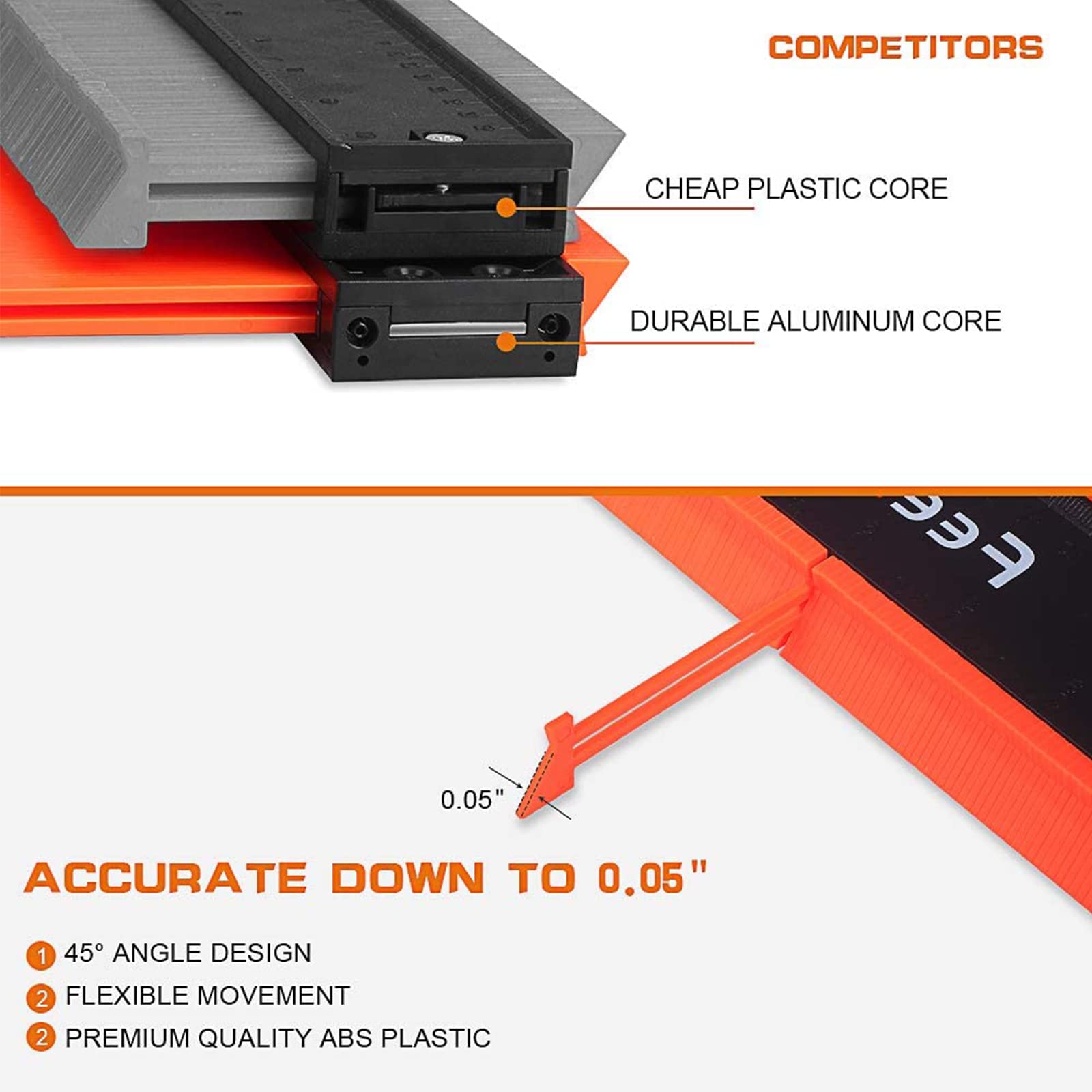 • 📏【Good Material & Dual Sides Scale Design】The scribe tool includes 1 × 12'' deepen contour gauge duplicator; The carpenter tools is made of high quality ABS plastic, high strength and rustproof. The master outline gauge, layout profile tool has an inch and a centimeter scales on the dual sides to provide accurate readings.