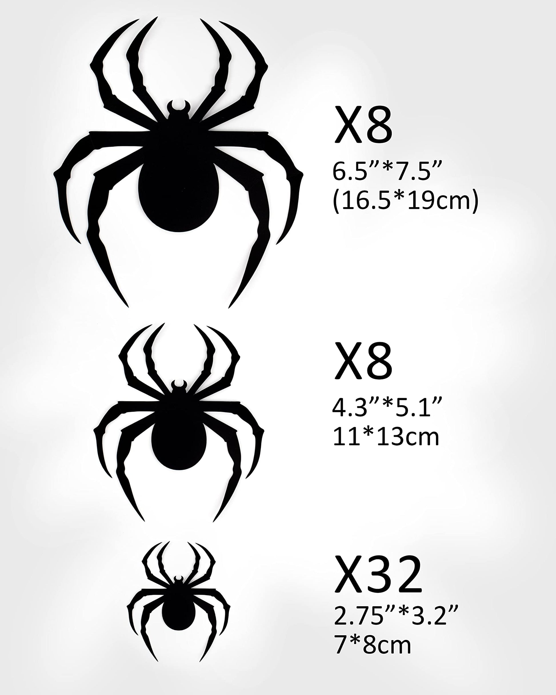 • Great Value Pack: The 48 pcs of spiders are in different sizes, with 8pcs large(7.5*6.5’’), 8pcs medium(5.1*4.3’’), and 32 pcs small(3.2*2.7’’). Multiple sizes allow application in different places and occasions.