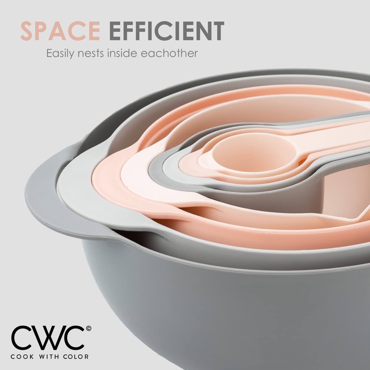 • Material & Care: Made of 100% polypropylene, this nesting bowl set is top-rack dishwasher safe (except for sieve), extremely durable, and 100% BPA free. Not microwave safe. Dishwasher-safe mixing bowls make cleanup a breeze.