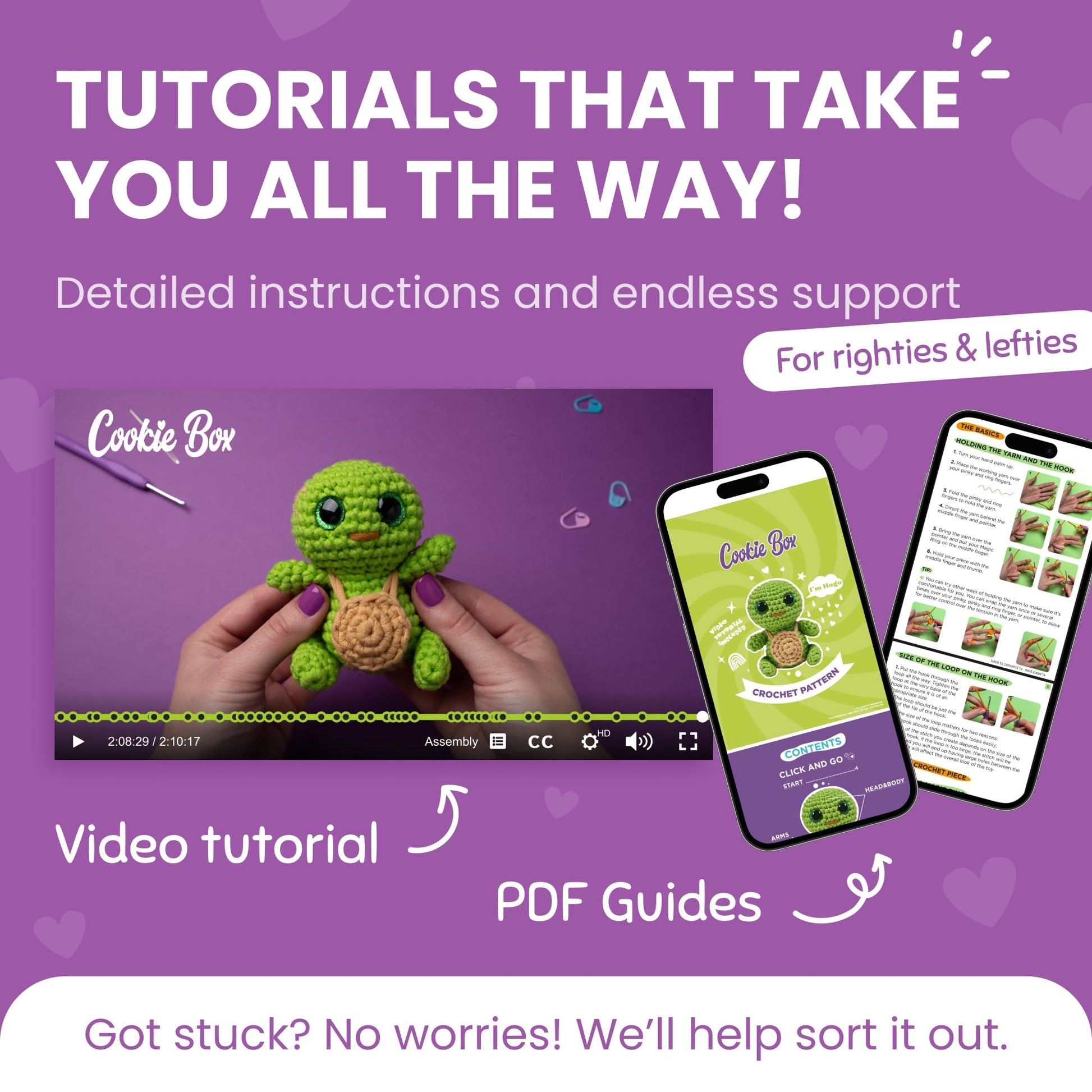 Cookie Box Crochet Kit for Beginners - Learn to Craft Amigurumi Stuffed Animals - Knitting Gift for Kids and Adults - Beginner-Friendly Yarn - Stitch-by-Stitch Video Tutorial - Turtle Hugo