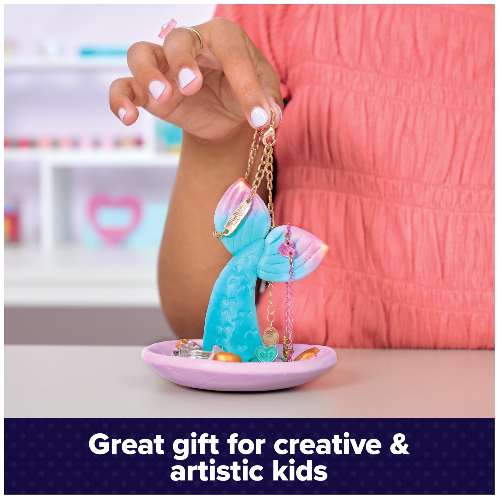 Details: Easily sculpt endless possibilities with the Cool Maker Pottery Studio. This innovative kids pottery wheel studio makes crafting and designing clay projects incredibly easy and fun for kids to do. Cool Maker has turned pottery upside down – simply place a clay disk onto the turntable, gently spray it with water and watch it spin and take shape in your hands. Cool Maker Pottery Studio’s unique design helps you create perfectly shaped pottery by letting gravity do the work for you. And once air-dried, the creativity really begins. This pottery kit for kids comes with multiple sculpting tools and 5 brightly colored metallic paints, so you can quickly customize each creation for a truly unique look. It’s pottery made easy. The Cool Maker Pottery Studio comes with everything you need to start right away. Create beautiful projects like a jewelry dish, cupcake pencil holder, and more. Discover a whole new way to create with clay with the Cool Maker Pottery Studio.