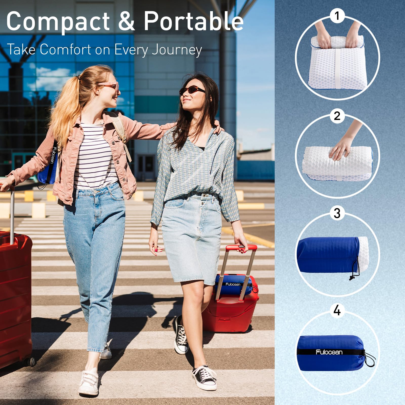 • Premium Gel Memory Foam – This small travel pillow is crafted from breathable gel-infused ventilated cooling memory foam, offering superior neck contouring, optimal support, and pressure relief compared to shredded foam or inflatable pillows. Fulocean camp pillow keeps your neck, shoulders, and spine aligned, ensuring you wake up refreshed wherever you are.