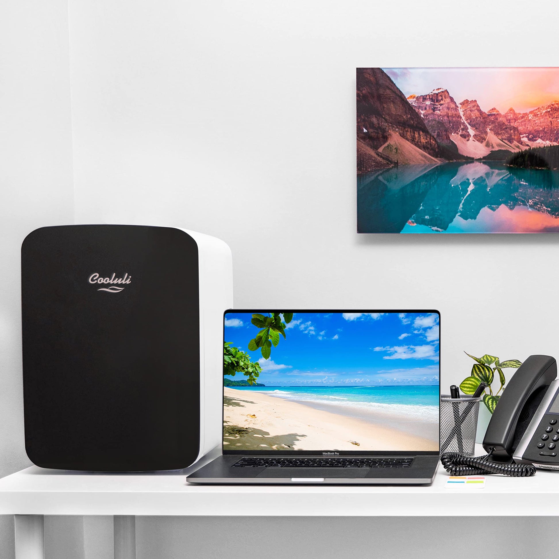 Cooluli 15L Mini Fridge for Bedroom - Car, Office Desk & College Dorm Room - 12v Portable Cooler & Warmer for Food, Drinks, Skincare, Beauty & Makeup - AC/DC Small Refrigerator with Glass Front, Black