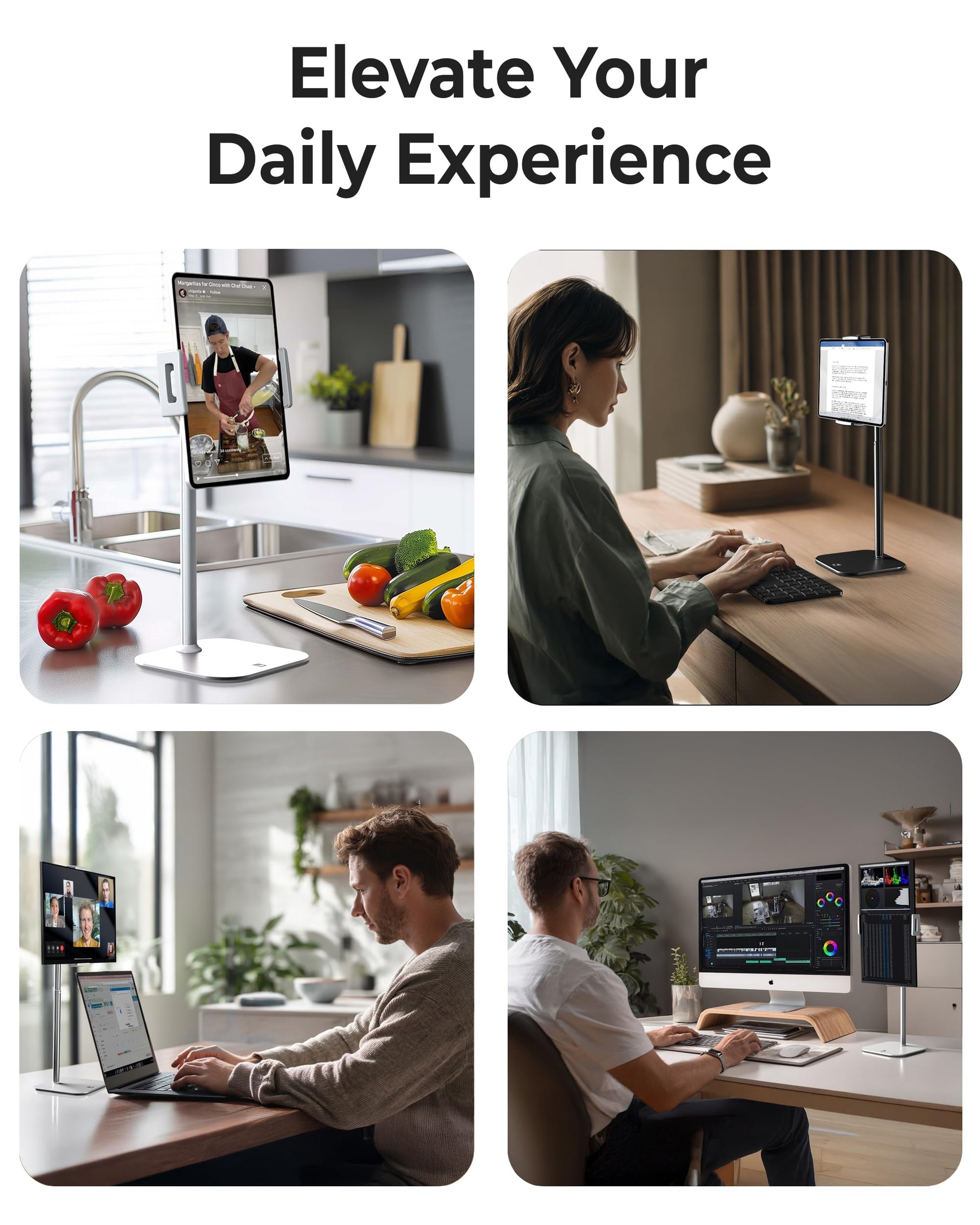 • Enhanced Stability System: Professional-grade tablet stand supporting up to 4.4lbs/2kg; reinforced with silicon insert technology for heavy 17' displays; maintains perfect position with 360° rotation even under maximum load; ideal portable monitor stand and iPad stand for desk