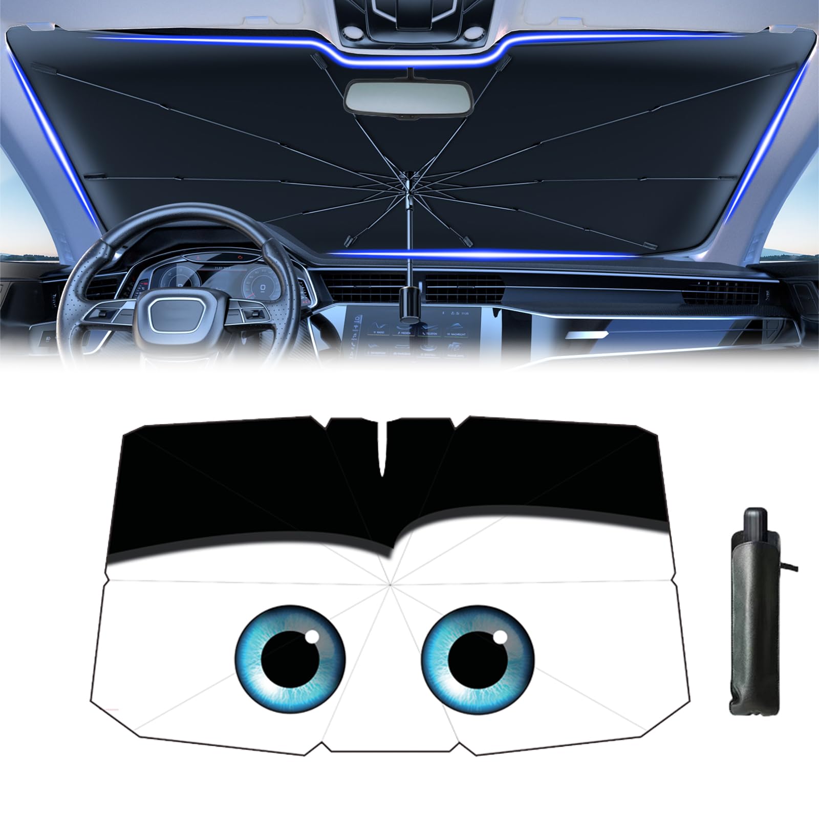 Coricha Windshield Sun Shade 2025 Car Accessories 100% Blackout Car Front Windsow Shades Umbrella Automotive Sun Visor Block Heat Insulation Protection (Black Eyes)