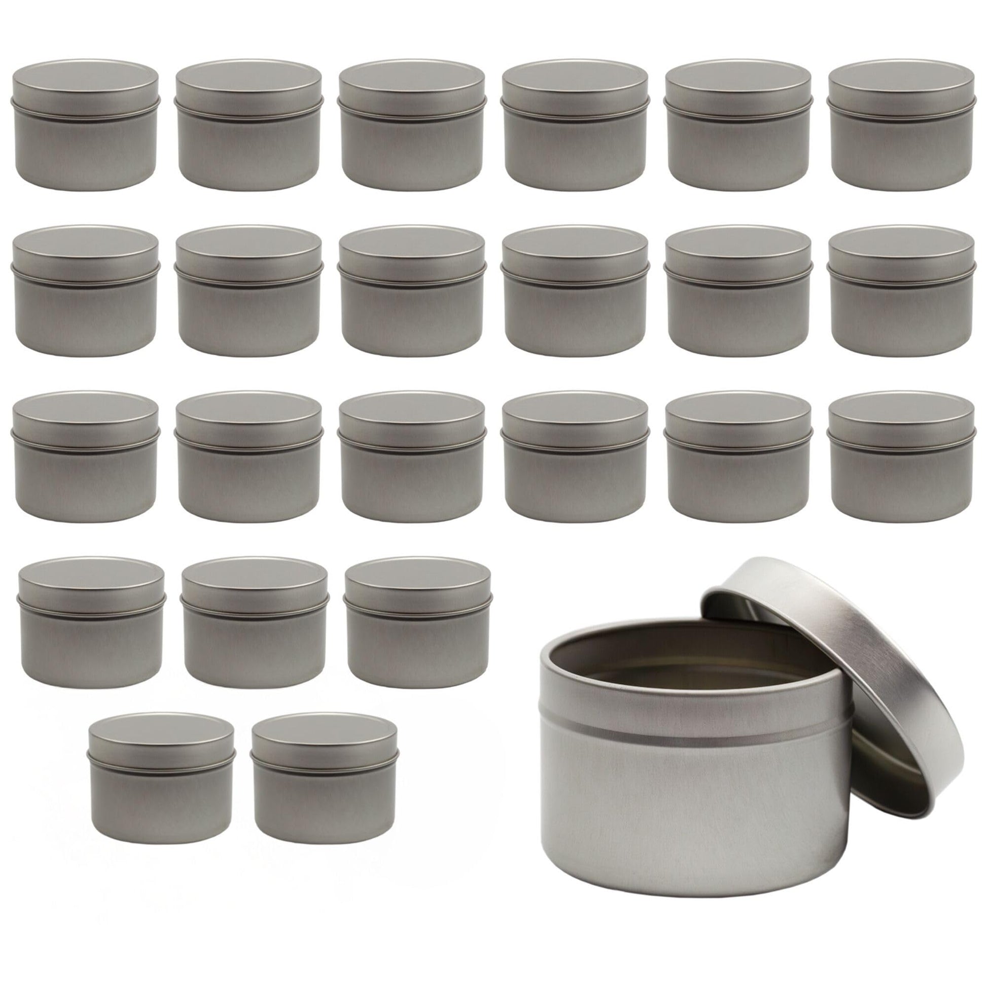 Cornucopia Brands 4-Ounce Metal Tins/Candle Tins (24-Pack); Round Containers w/Slip-On Lids for Party Favors, Candle Making, Spices, Gifts