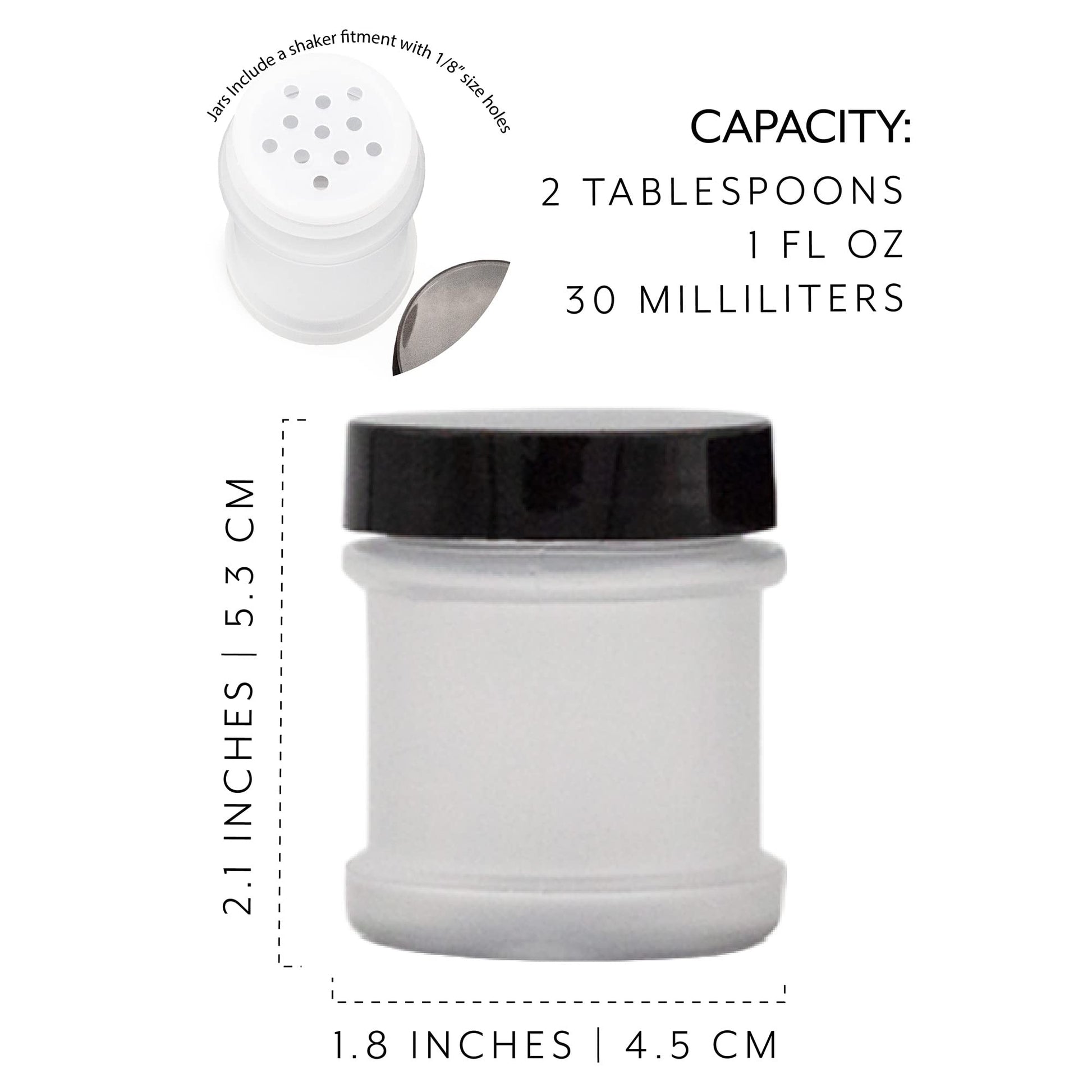 • SIFTER: Jars include a shaker fitment with ⅛” size holes perfect for dried ground spices or ground herbs