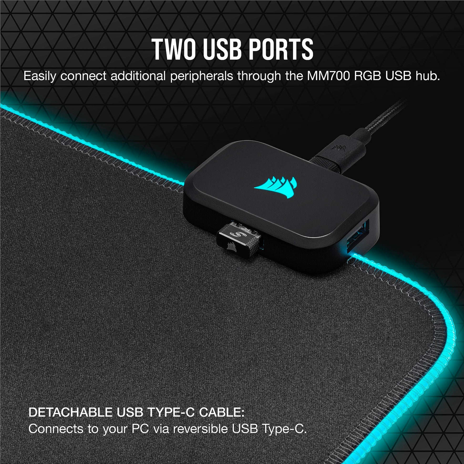 CORSAIR MM700 RGB Extended Cloth Gaming Mouse Pad - 36.6" x 15.8" - 360° RGB Lighting - Two USB Port Hub - Thick Rubber - Black