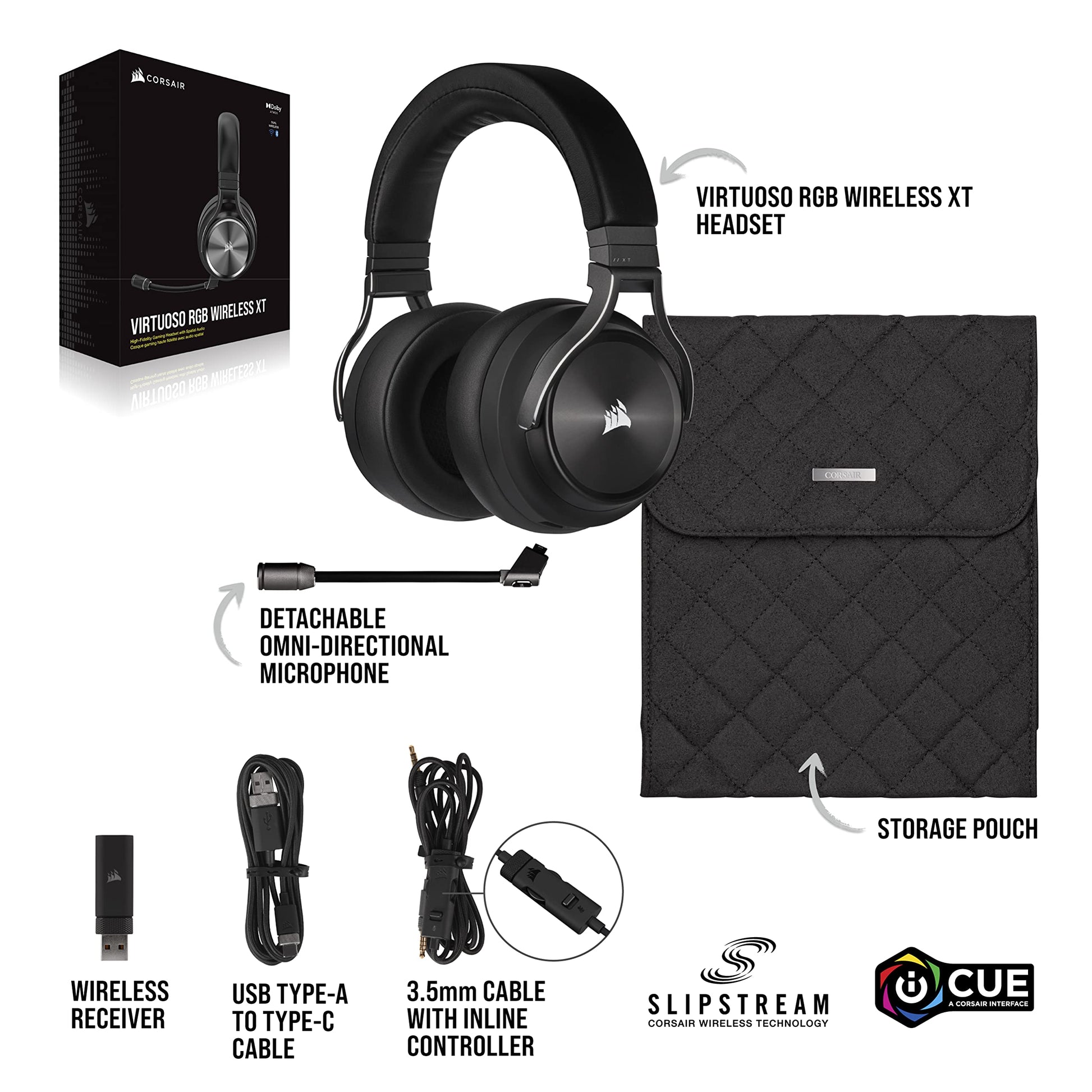 CORSAIR VIRTUOSO RGB WIRELESS XT Multiplatform Gaming Headset With Bluetooth - Dolby Atmos - Broadcast Quality Microphone - iCUE Compatible- PC, Mac, PS5, PS4, Nintendo Switch, Mobile - Black