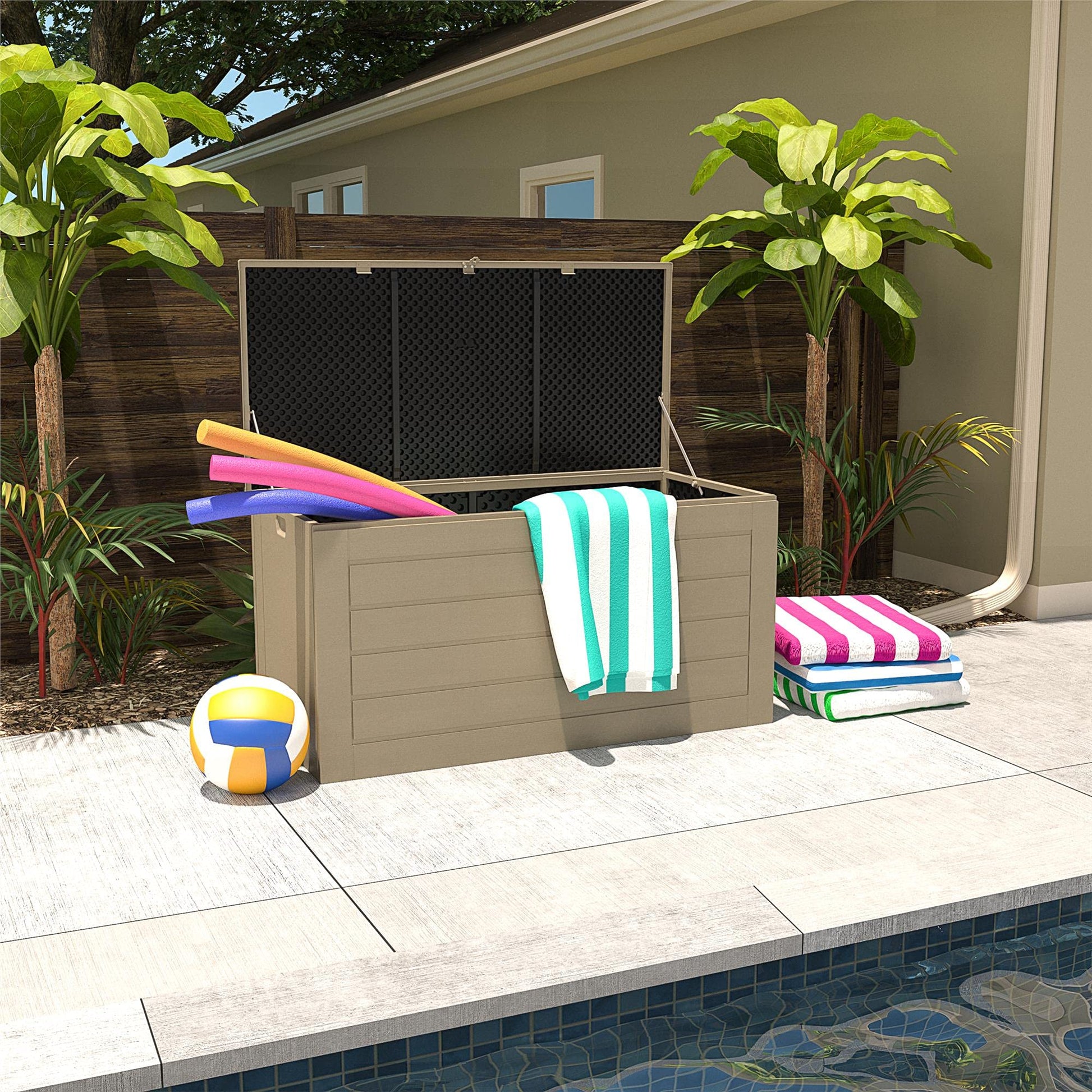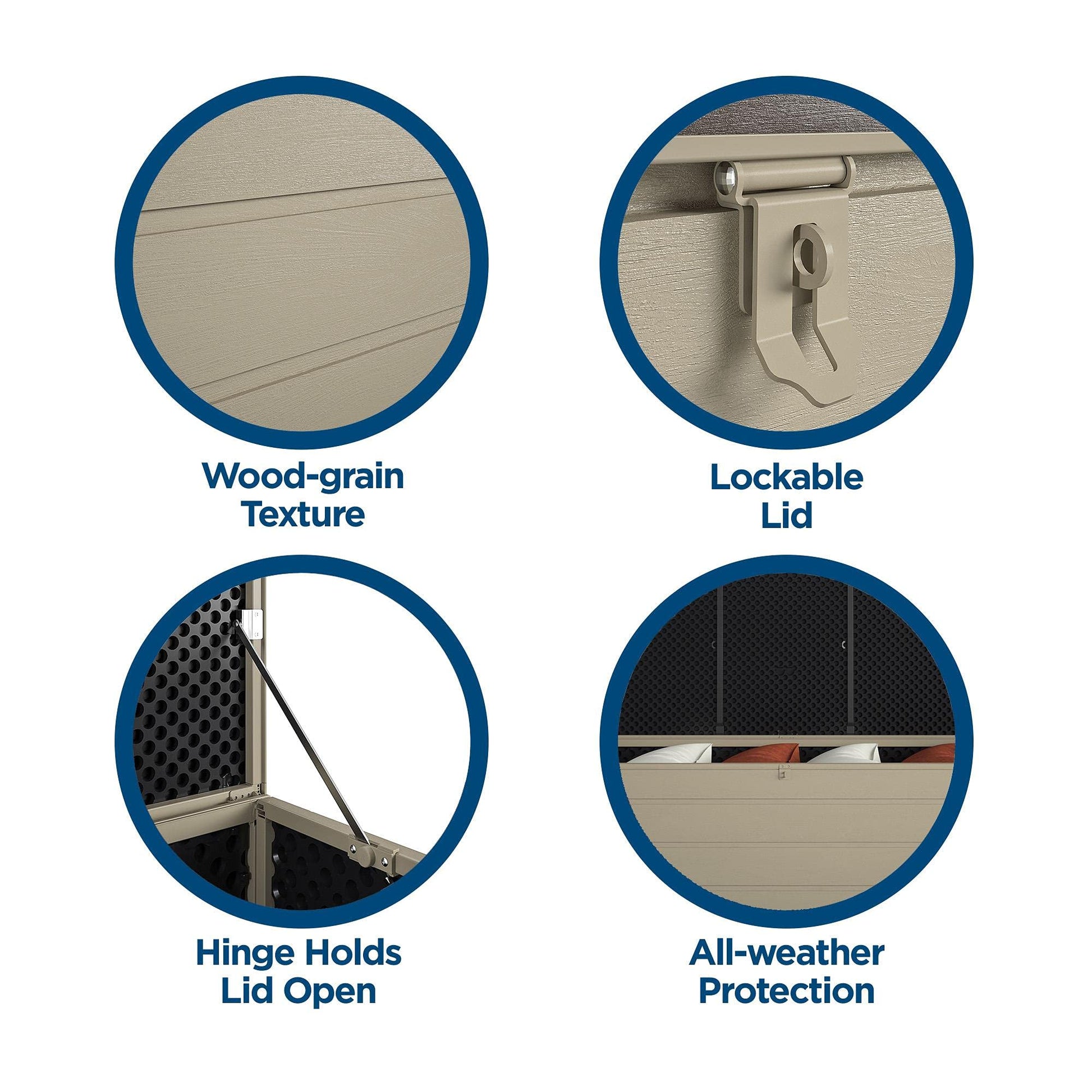Cosco Outdoor Living 180 Gallon Patio Storage Box, Extra Large, Lockable Lid, Weather-Resistant, Tan/Brown