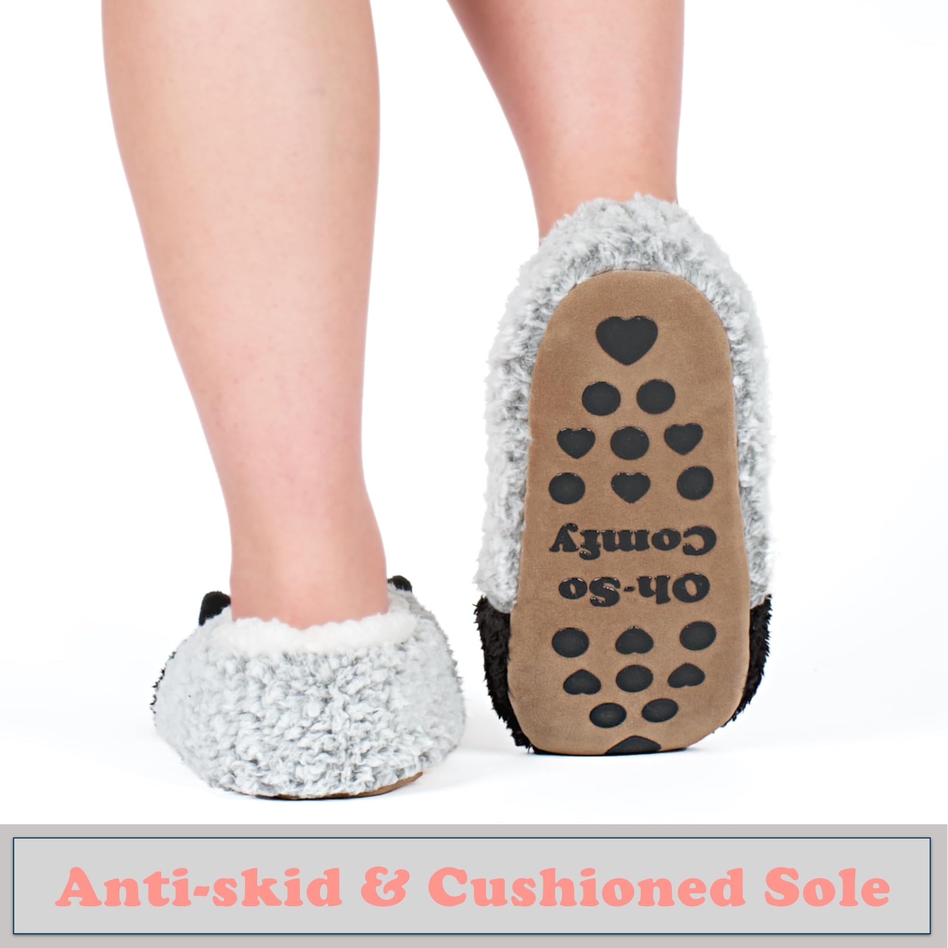 • Cute animal face design with a lovable smile on the fluffy, fuzzy material is perfect for kids, girls, women, and ladies who love cozy and comfy slippers or footies at home.