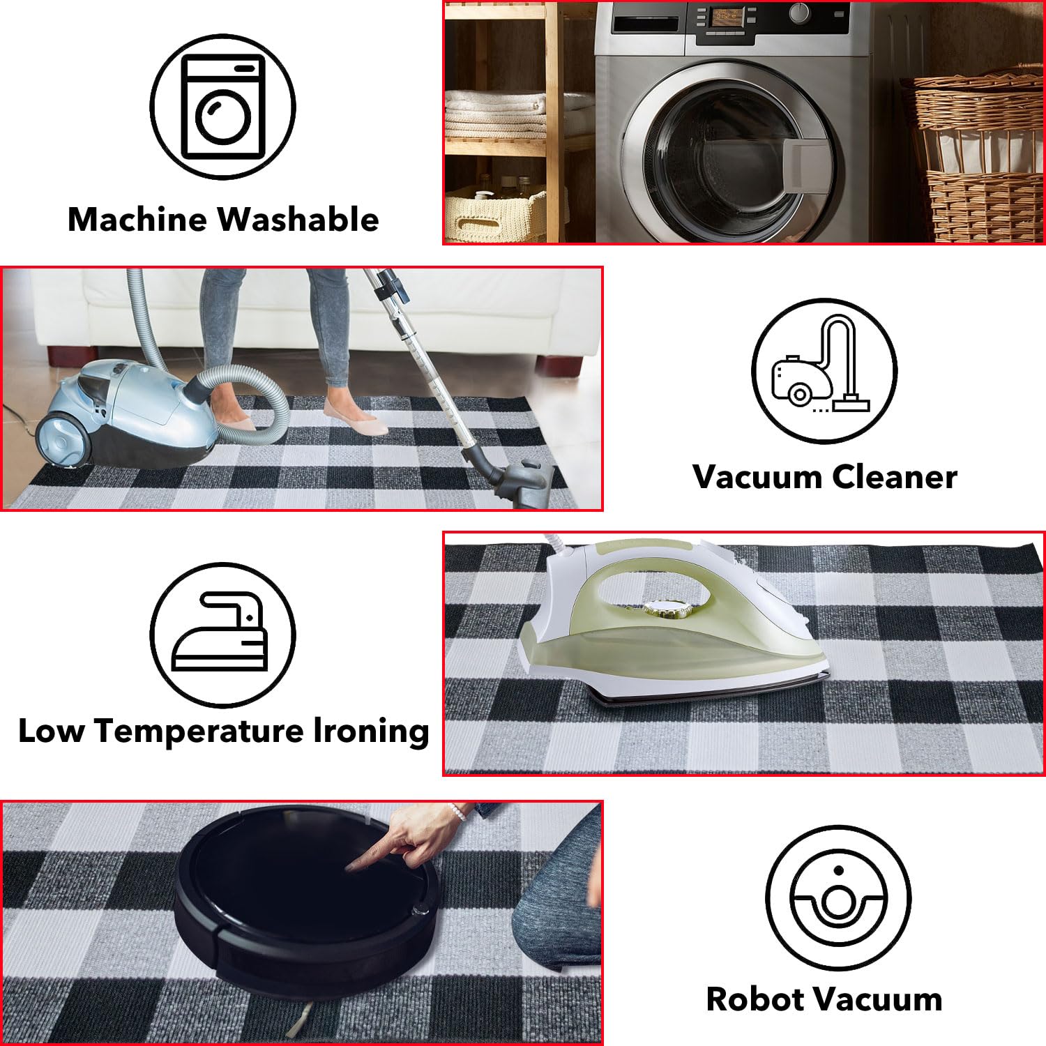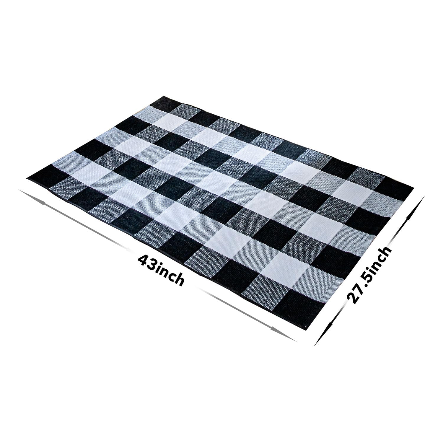 • 【SOFT & DURABLE DESIGN】: Crafted with high-quality cotton, the outdoor rug offers a luxurious softness and comfortable touch. The checkered rug's exquisite hand-woven design showcases the classic black and white check pattern, making it a timeless addition to your decor. Moreover, the use of eco-friendly fabric ensures both style and conscience.